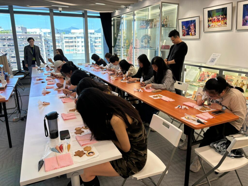 Ina Ho Cantonese Opera Research Centre (IHCORC) hosted an activity named 'Cantonese Opera Art Appreciation Series – Indulging and Immersing in Flavour • Craft • Scent • Costume — Icing Sugar Cookies Workshop' for HKMU staff and students on October 2, 2024 (Wednesday), with around 20 participants joining the event. The workshop started by Dr Penn Ip introducing to the participants the characteristics and meanings of different Cantonese opera face paintings. Then Ms Stephanie from Amico, the tutor, demonstrated and guided the participants in painting Cantonese opera faces onto cookies, introducing Cantonese opera culture in a fun and engaging way. This was the first event under the series 'The Cantonese Opera Art Appreciation Series – Indulging and Immersing in Flavour • Craft • Scent • Costume' to be held by IHCORC.