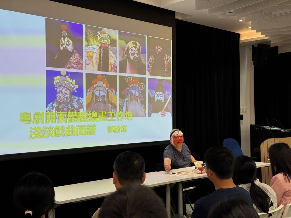 內容:介紹粵劇中(淨角)的「開面」過程,示範及教授繪畫粵劇面譜的技巧,以及講解各種化妝主色代表的性格;參加者體驗設計和繪畫具個人特色的面譜