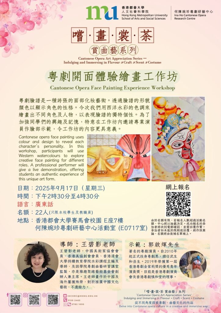 School of Arts and Social Sciences Research Ina Ho Cantonese Opera Research Centre 「嚐 · 畫 · 裳 · 茶 賞曲藝」系列 —「粵劇開面體驗繪畫工作坊」(2025年9月17日)