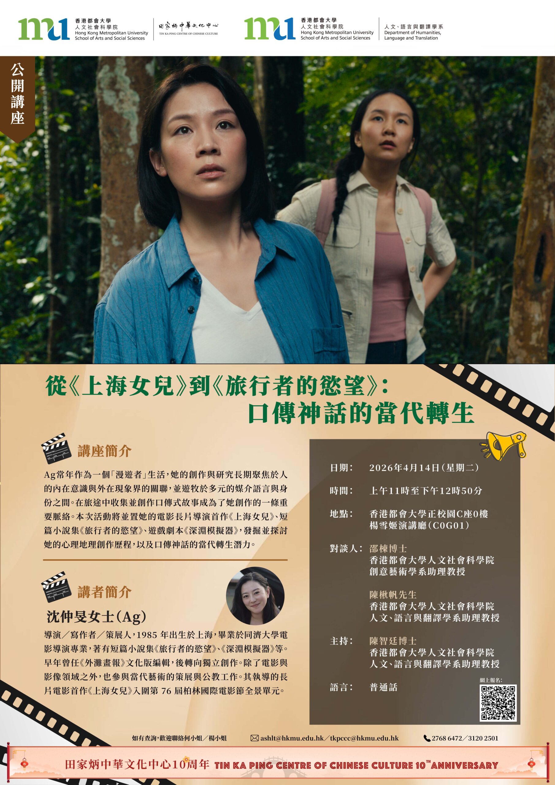公開講座:從《上海女兒》到《旅行者的慾望》:口傳神話的當代轉生