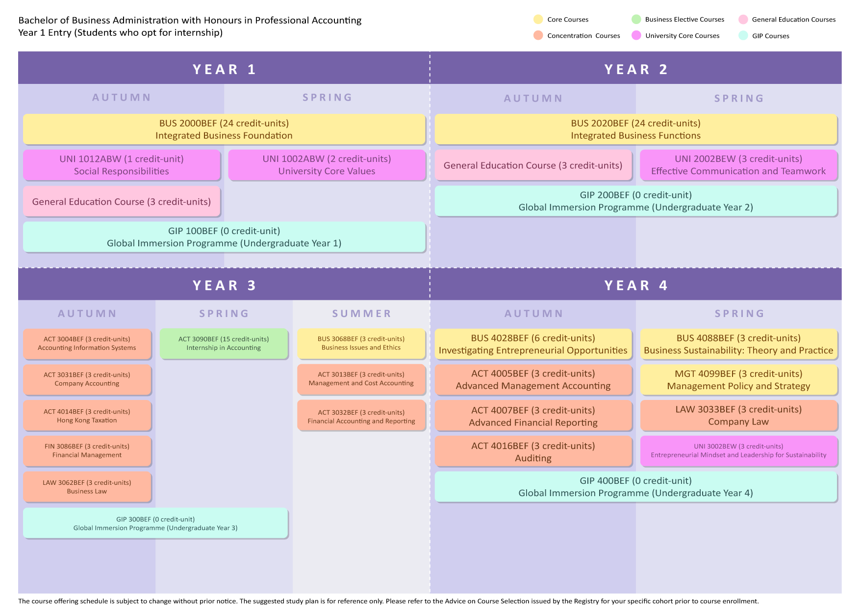 The programme structure displayed on this page is subject to updates and modifications without prior notice. Students admitted to the programme in different academic years (and terms) should refer to the “Programme Requirements” specific to their year of admission. In the event of any inconsistency or ambiguity between the programme structure and the “Programme Requirements”, the “Programme Requirements” shall take precedence.
