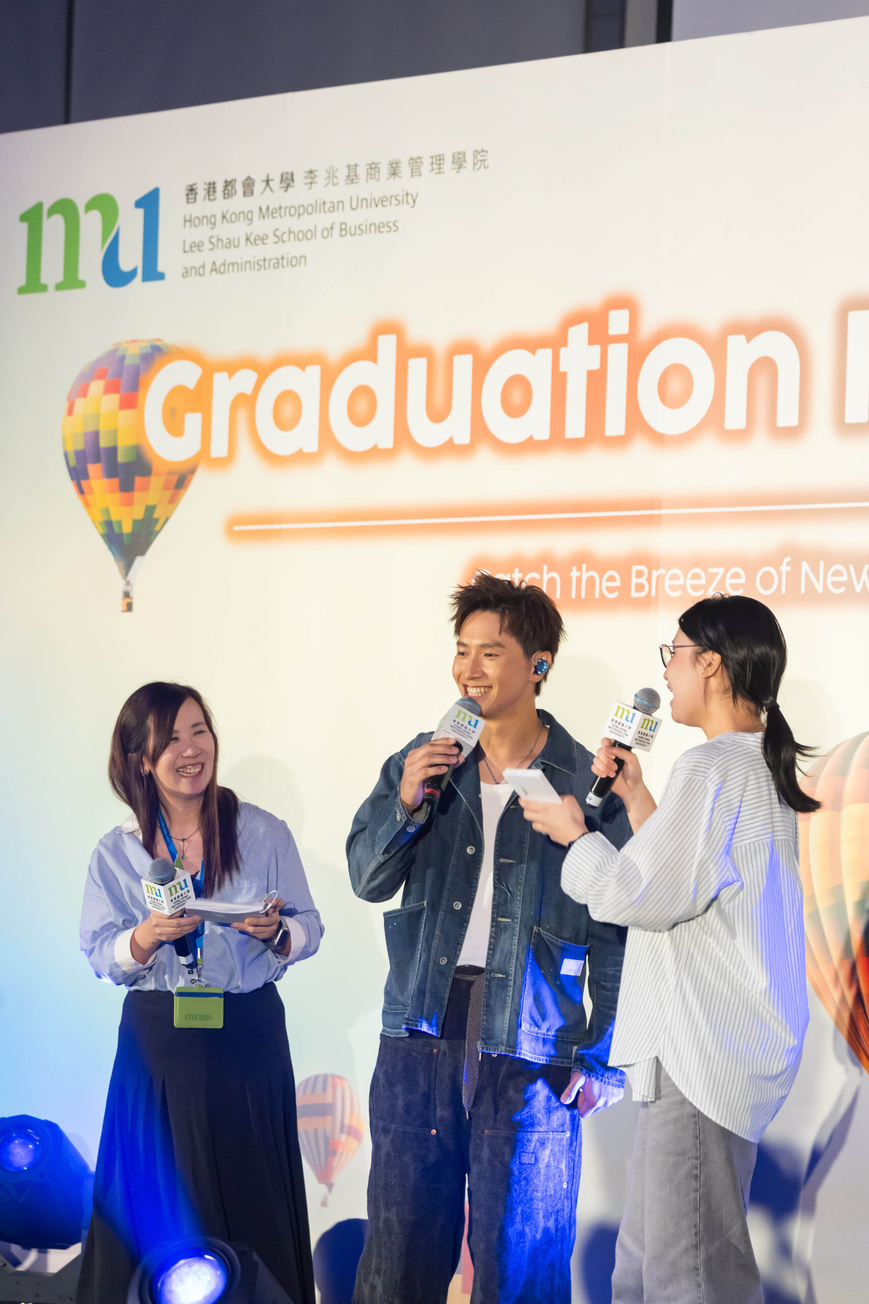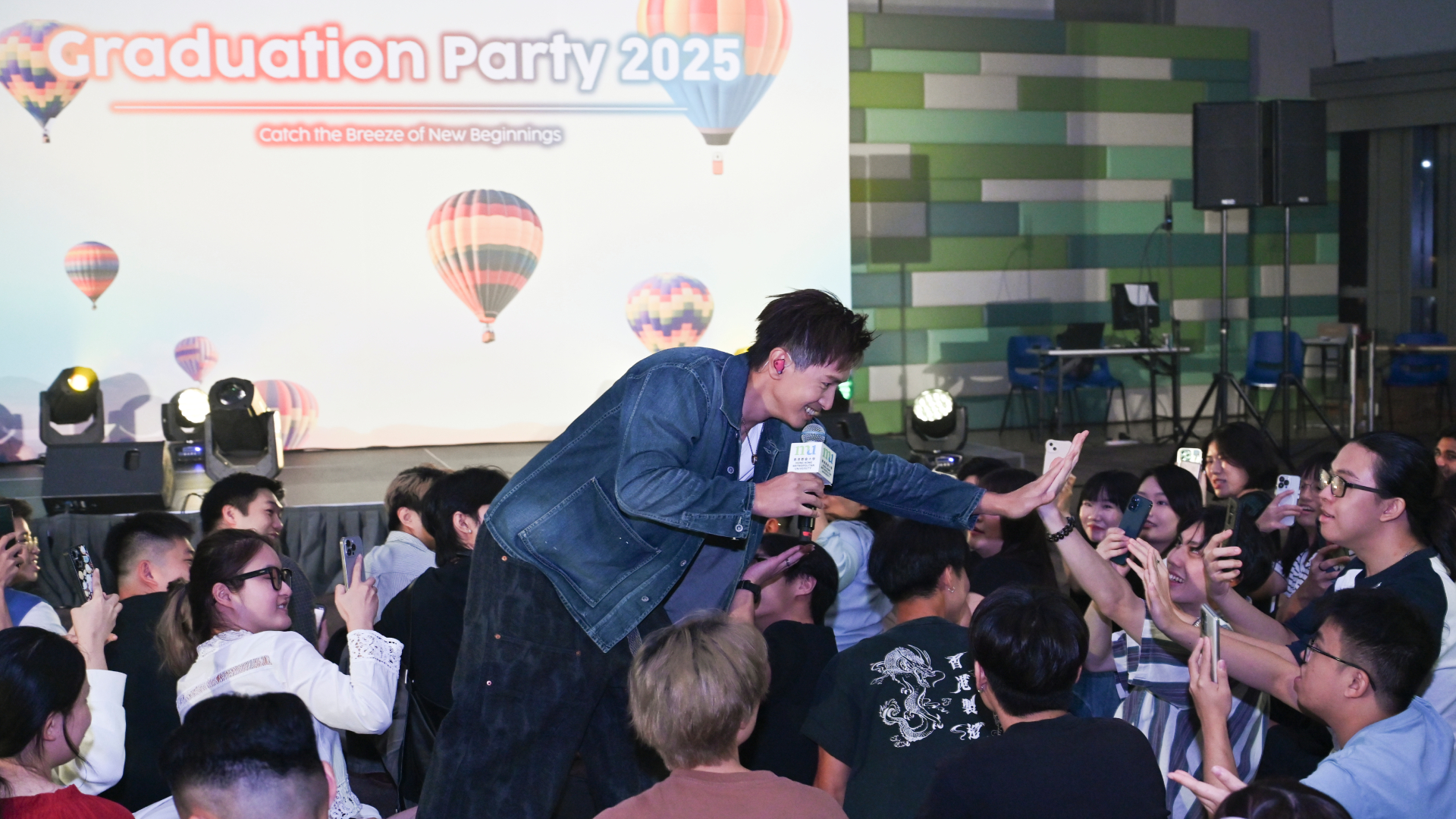 庆祝毕业同学即将展开人生新篇章,2025毕业派对邀请到歌手陈柏宇和云浩影担任表演嘉宾!2位歌手不但带来精彩表演,更和同学大玩互动,合照打卡,场面十分热闹。
