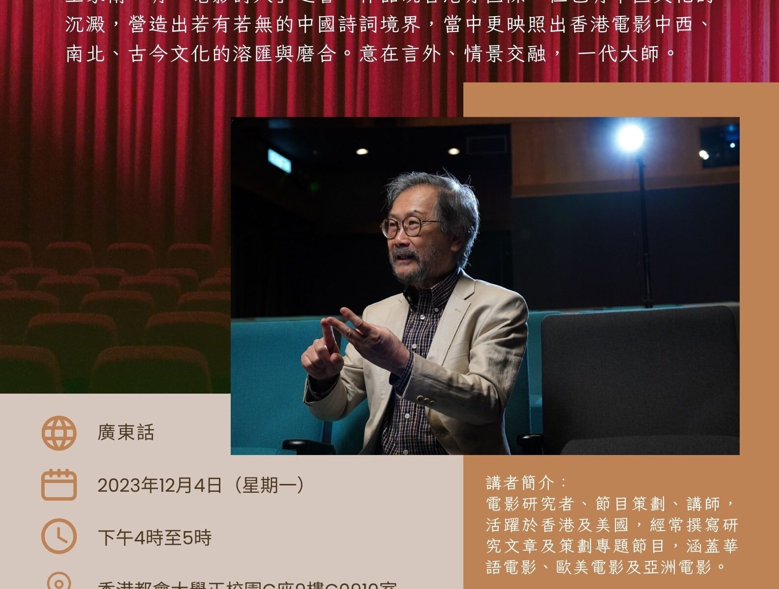 主頁 課程簡介 教職員 學生作品 師生活動 聯絡我們 Facebook Mail-bulk Instagram 聯招課程諮詢日 每次有關CWFA的課程諮詢日,我們都會精心設計不同題材。好像今年初有靖誼師姐回校,跟外來的朋友分享她在這裡讀書與後來的工作經驗。靖誼師姐口齒伶俐,說話生動,非常精彩。當日到來的聽眾都聽得津津入味,不斷問師姐問題。 新一次聯招課程諮詢日會於今個星期六即5月18日舉行,我們CWFA課程的時段是下午2時45分到3時15分,講題是「學院派導演——從理論到實踐」,屆時還帶大家看看我們上課的地方與環境,有興趣的朋友記得報名參加,連結見下,大家打開「人文社會科學院」的「創意藝術」一欄就見到我們了。 期待星期六與大家見面