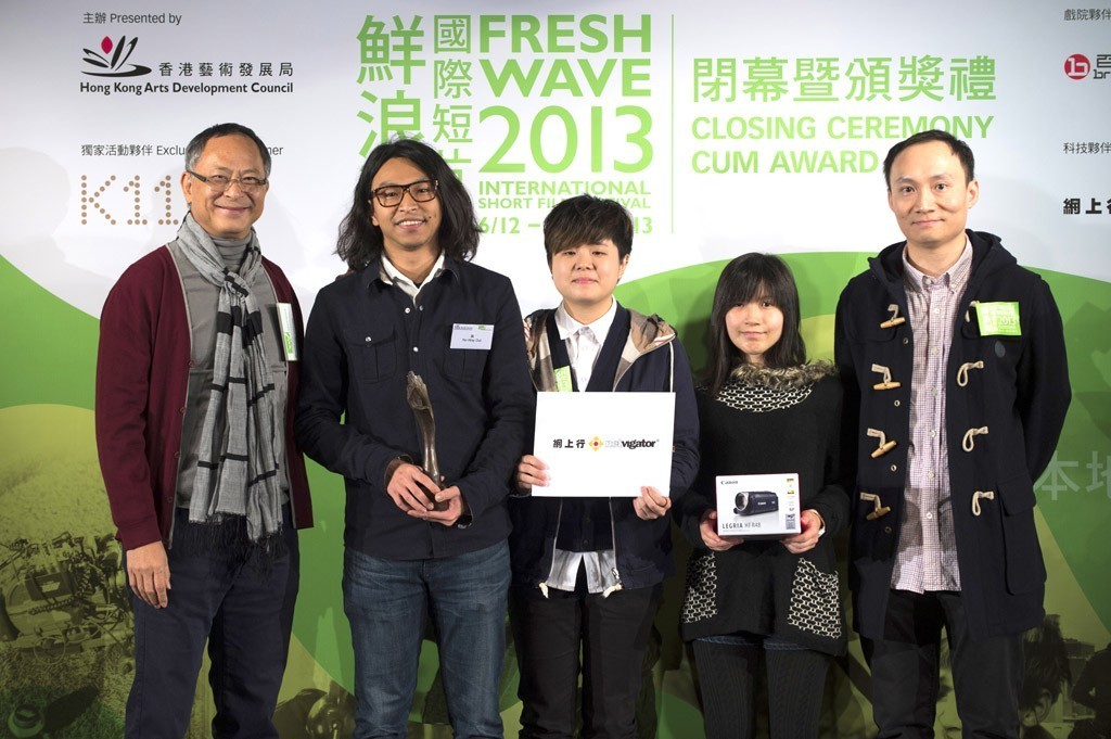 第二屆畢業生郭汶浩所導演的短片《路》榮獲2013鮮浪潮學生組「最佳攝影」獎項,得獎同學鄭俊豪。 [caption id="attachment_12572" align="alignnone" width="1024"] 得獎隊伍同學(左起:郭汶浩、張淑欣、黃婉兒)從兩位頒獎嘉賓手中取得獎項。[/caption] [caption id="attachment_12573" align="alignnone" width="1024"] 幕前幕後跟本片監製與指導老師葉曉丹先生(左三)同拿著獎項慶賀一番。[/caption]