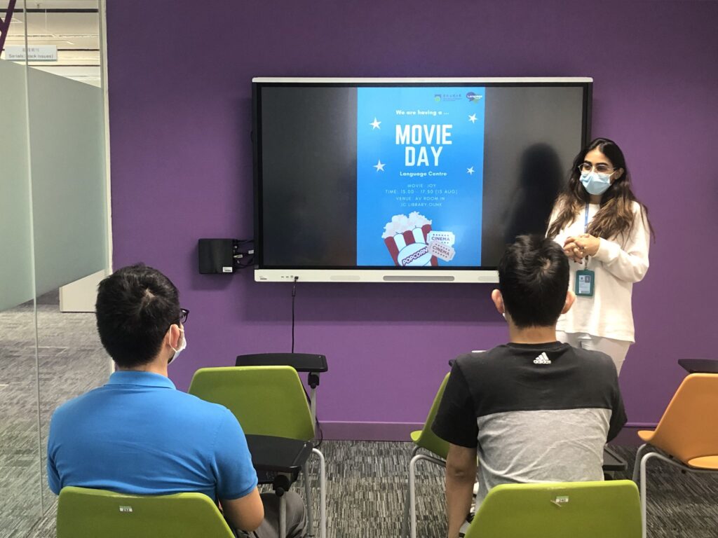 Listening sessions aim to improve verbal English comprehension. During these sessions, students will be shown a piece of media such as a song or short film. Afterward, they will be tasked with answering prompts and discussing its contents.