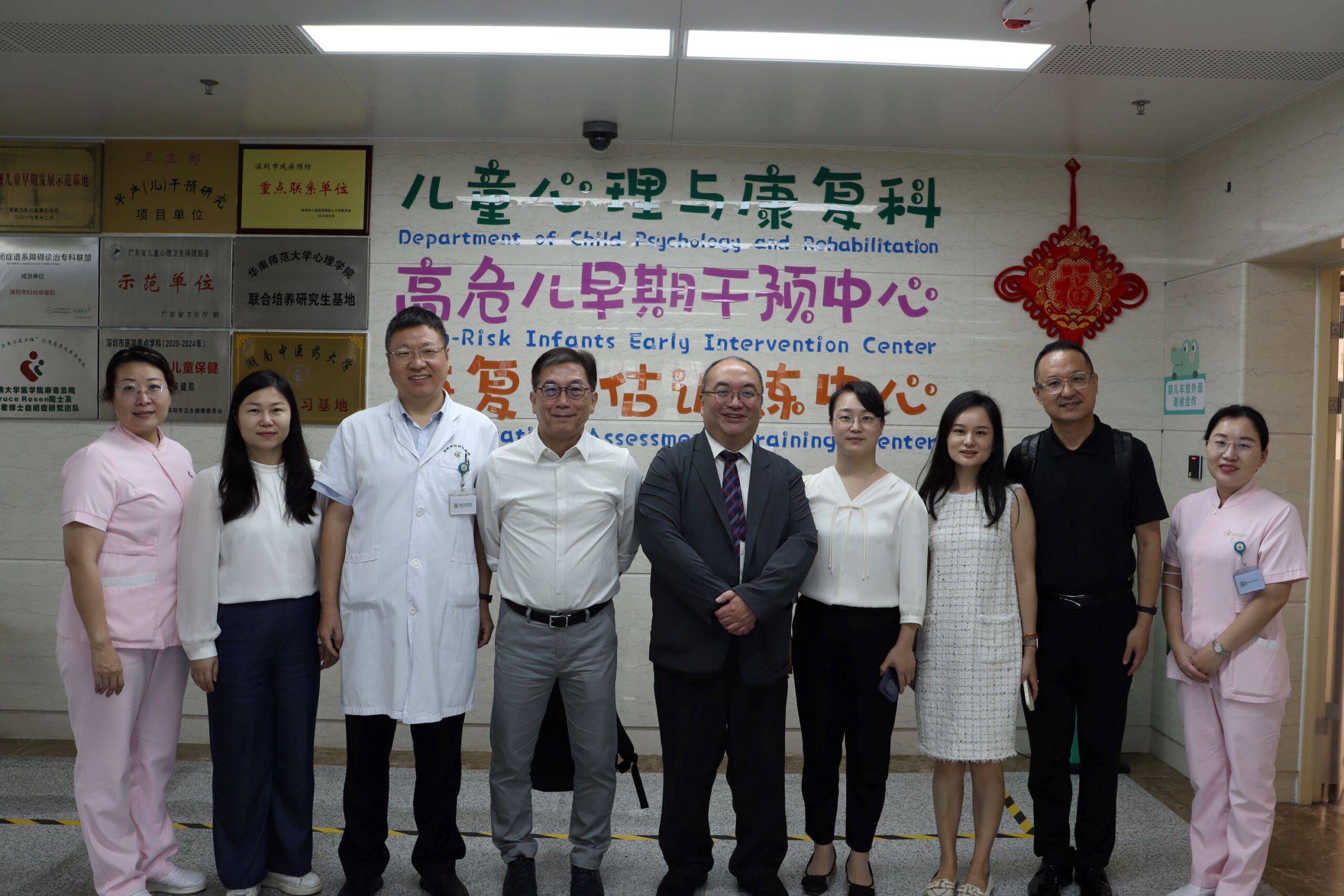 Recently, Professor Andy Chin, Dean of the School of Education and Languages, Professor Hintat Cheung, Honorary Professor of the School of Education and Languages, and Dr. Emily Ge, Programme Leader of MSCCSCLDF, visited Shenzhen Maternity and Child Healthcare Hospital.  During the visit, representatives from both sides engaged in in-depth discussions on clinical practicum arrangements, professional training models, and opportunities for interdisciplinary collaboration for postgraduate students. By integrating academic knowledge, evidence-based practice, and extensive clinical experience, the collaboration aims to support the MSCCSCLDF students in developing essential competencies in clinical assessment, diagnosis, intervention, and parent counselling, thereby strengthening their professional expertise and practical skills.