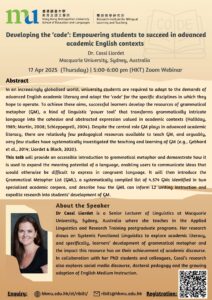Developing the ‘code’: Empowering students to succeed in advanced academic English contexts