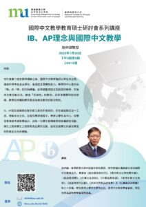 國際中文教學教育碩士研討會系列講座 – IB、AP理念與國際中文教學