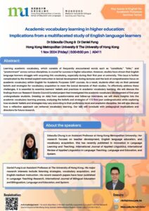 Venue: Multi-purpose Hall, 10/F, Main Campus, Hong Kong Metropolitan University