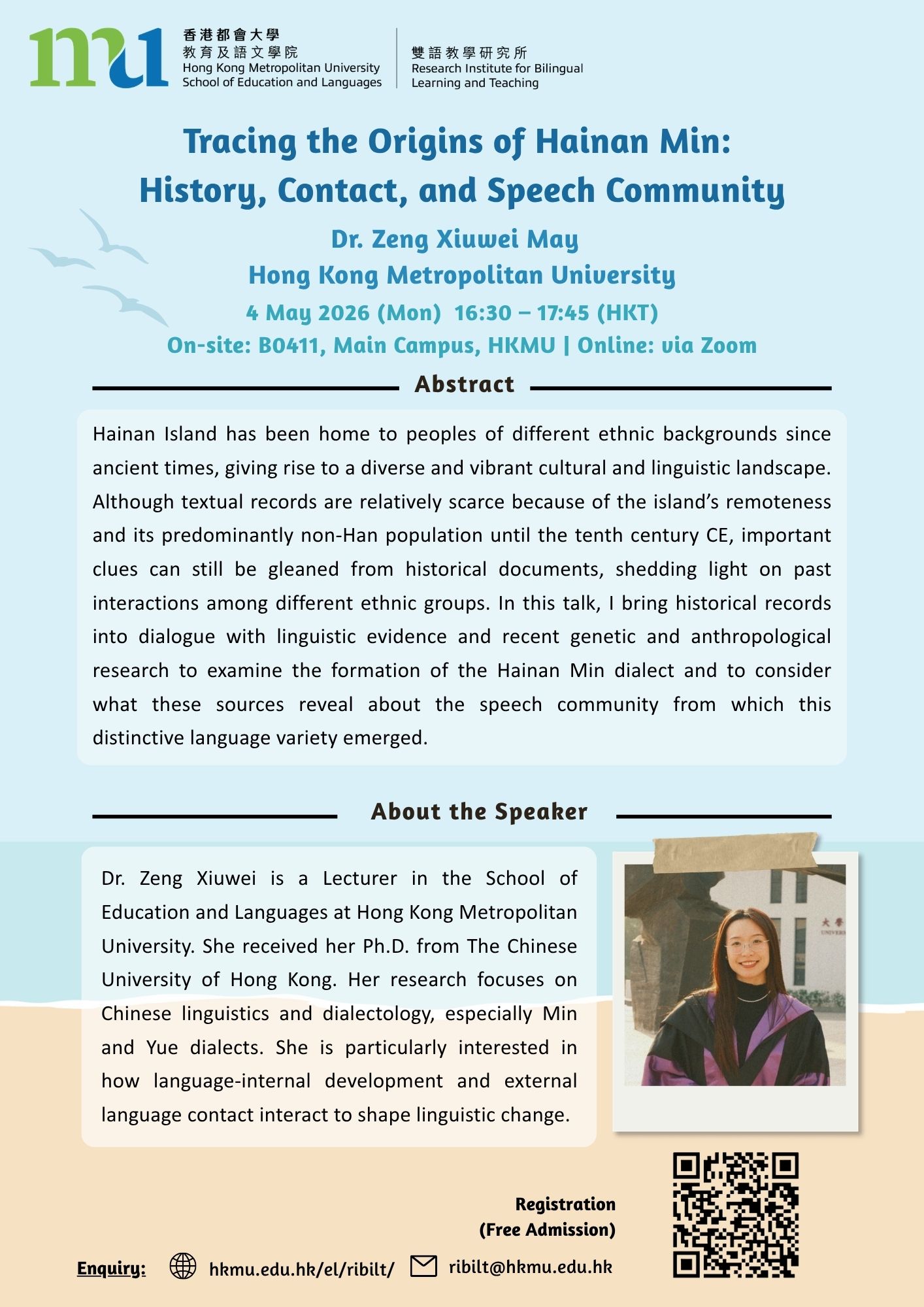 10 December 2025RIBiLT Webinar Series: Child Language DevelopmentContextual Strategies for Enhanced Chinese Word Recognition: Cultivating University Students in the Development of Tools for Early Childhood LiteracySpeaker: Dr Dorothy Tong Please click here for more details |