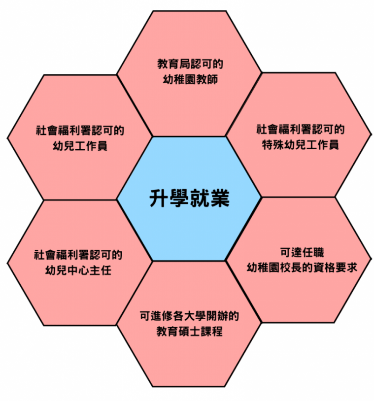 畢業生可成為幼稚園教師、幼兒中心工作員,亦可從事幼兒教育及發展相關行業,也可考慮於本地或海外大學繼續升學,出路廣闊。