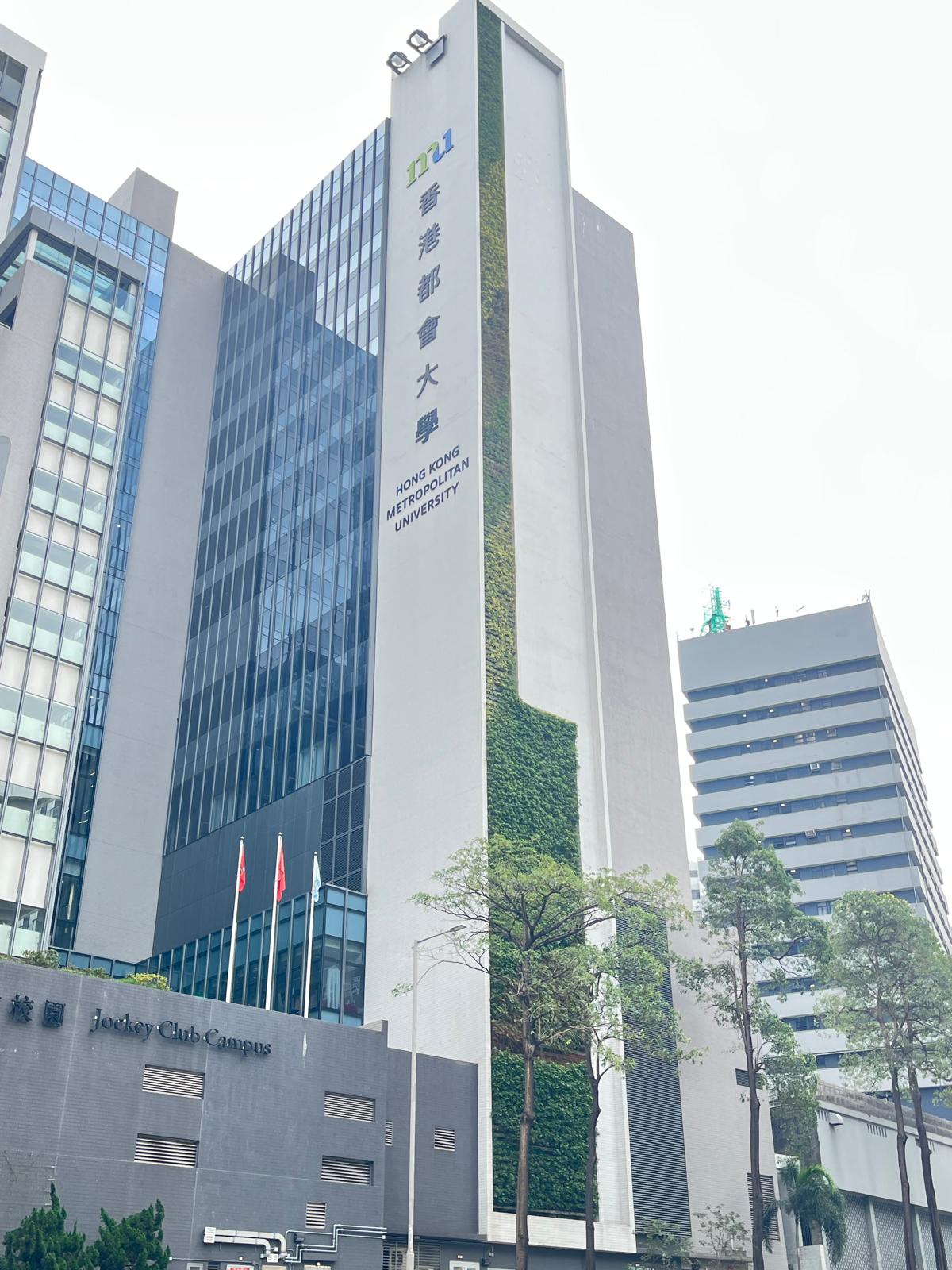 The green wall facing Princess Margaret Road on the Jockey Club Campus (JCC) is an innovative green initiative that facilitates heat absorption, increases humidity, regulates the microclimate, mitigates noise, and also helps break down toxic gas emissions from nearby vehicles. This JCC building is the tallest external vertical greenery institutional building (73 m) in Hong Kong.