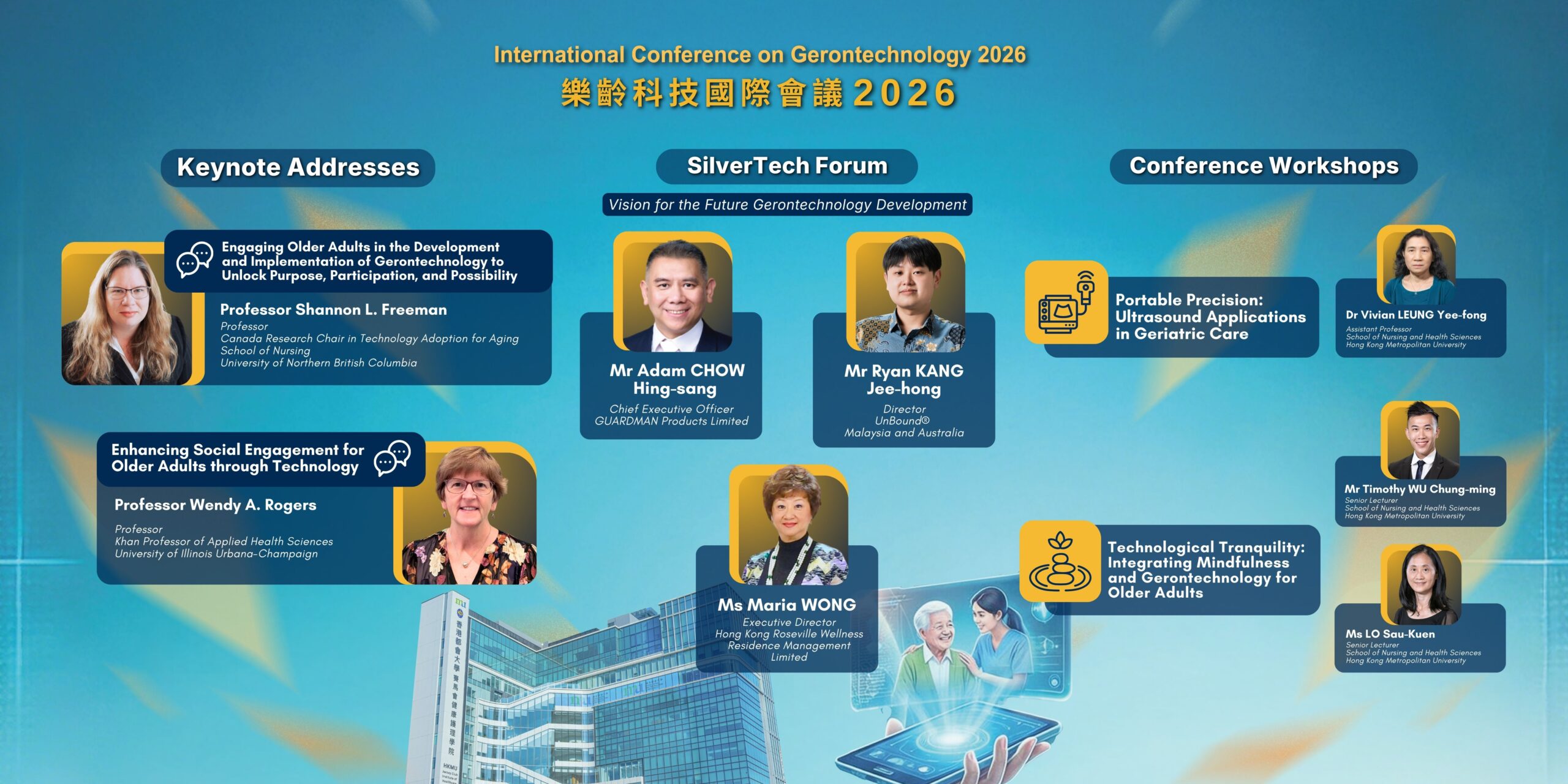 It is with great pleasure and excitement that we warmly welcome you, on behalf of the organising committee, to the International Conference on Gerontechnology 2026 (ICG 2026), which will take place on June 23, 2026, at Hong Kong Metropolitan University.
