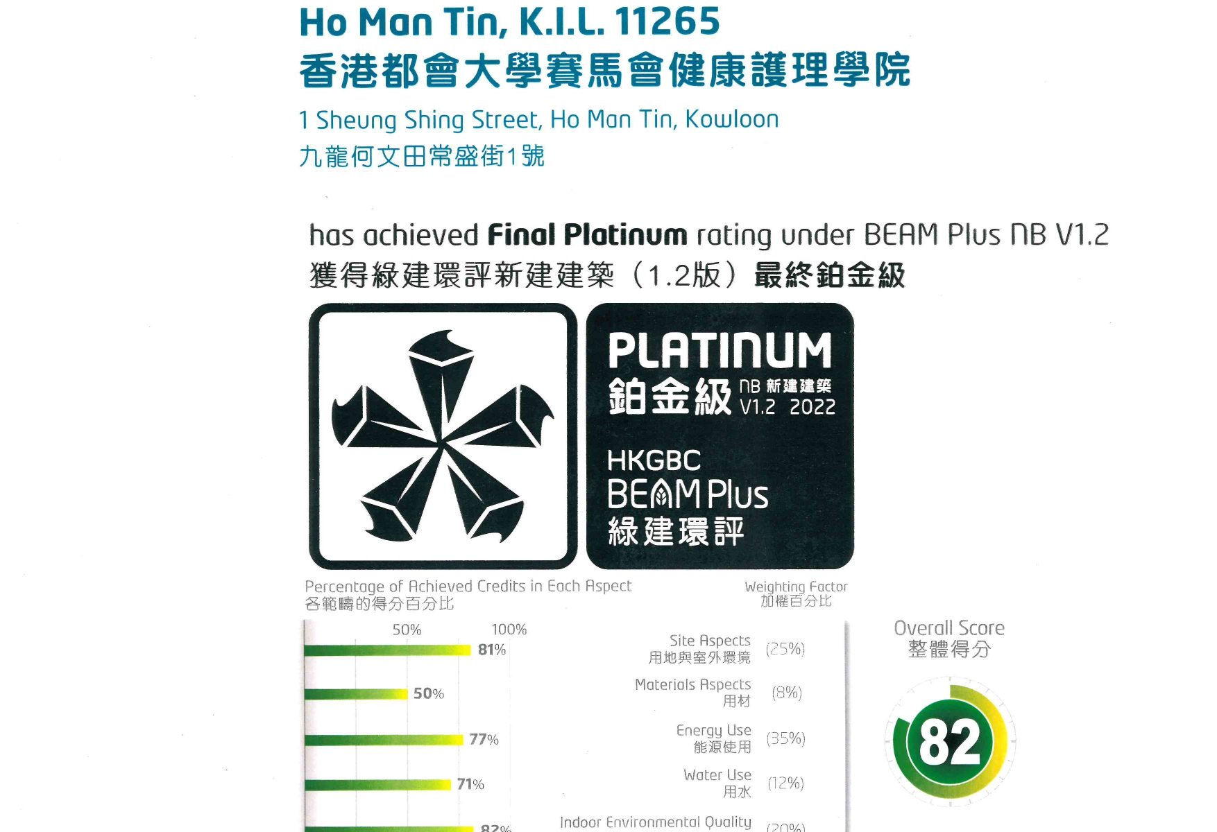 HKMU Jockey Club Institute of Healthcare awarded BEAM Plus Platinum rating