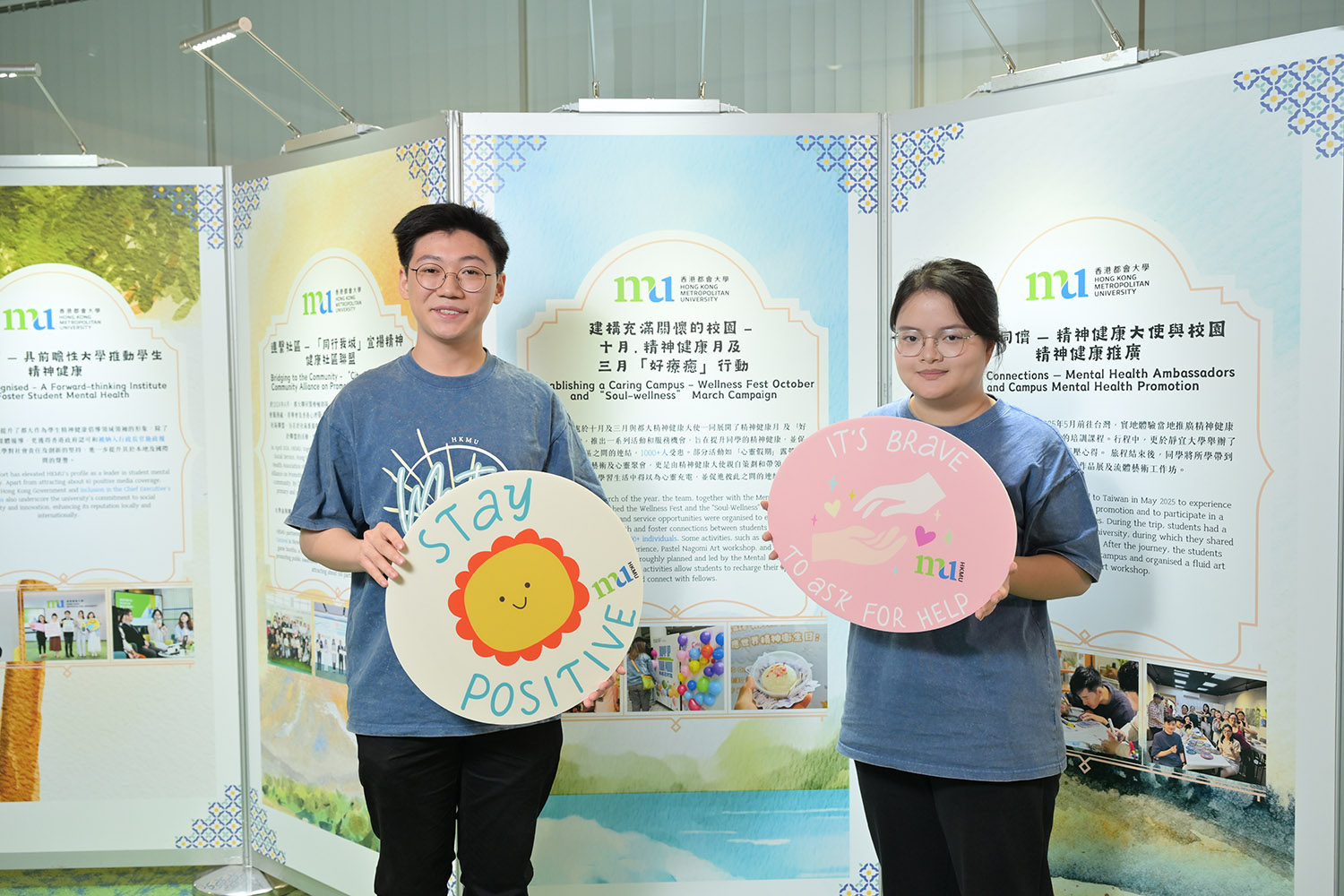 HKMU has also been active in promoting mental health awareness in the community. In April 2024, the University partnered with the Auxiliary Medical Service, Baptist Oi Kwan Social Service, Hong Kong Lutheran Social Service, SideBySide, and the Mental Health Association of Hong Kong to establish the “City Companion” Community Alliance on Promoting Mental Health. As of December 2025, over 10,000 participants, including the elderly, secondary and primary school students, and persons in recovery, had taken part in related activities.