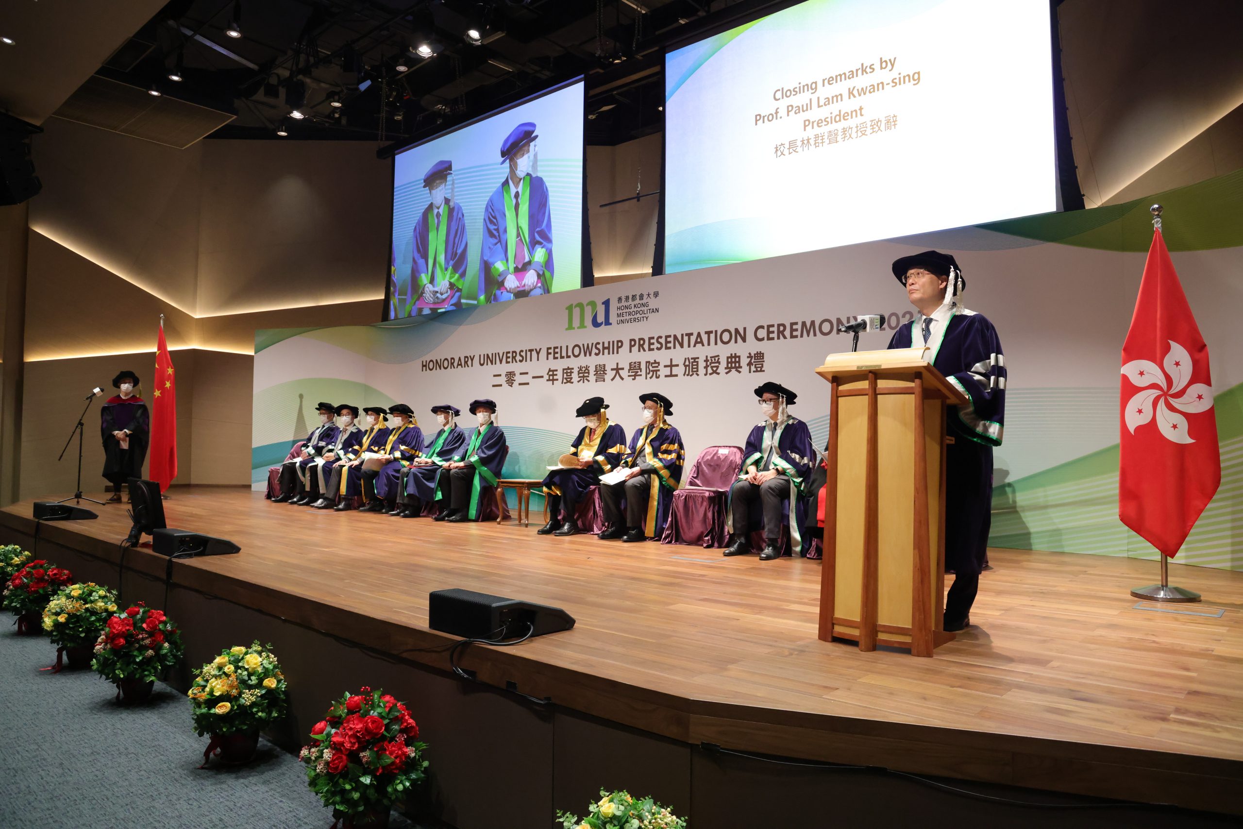 Addressing the ceremony, Council Chairman Mr Michael Wong Yick-kam commended the three Honorary Fellowship recipients for their accomplishments in their respective fields and contribution to the betterment of society.