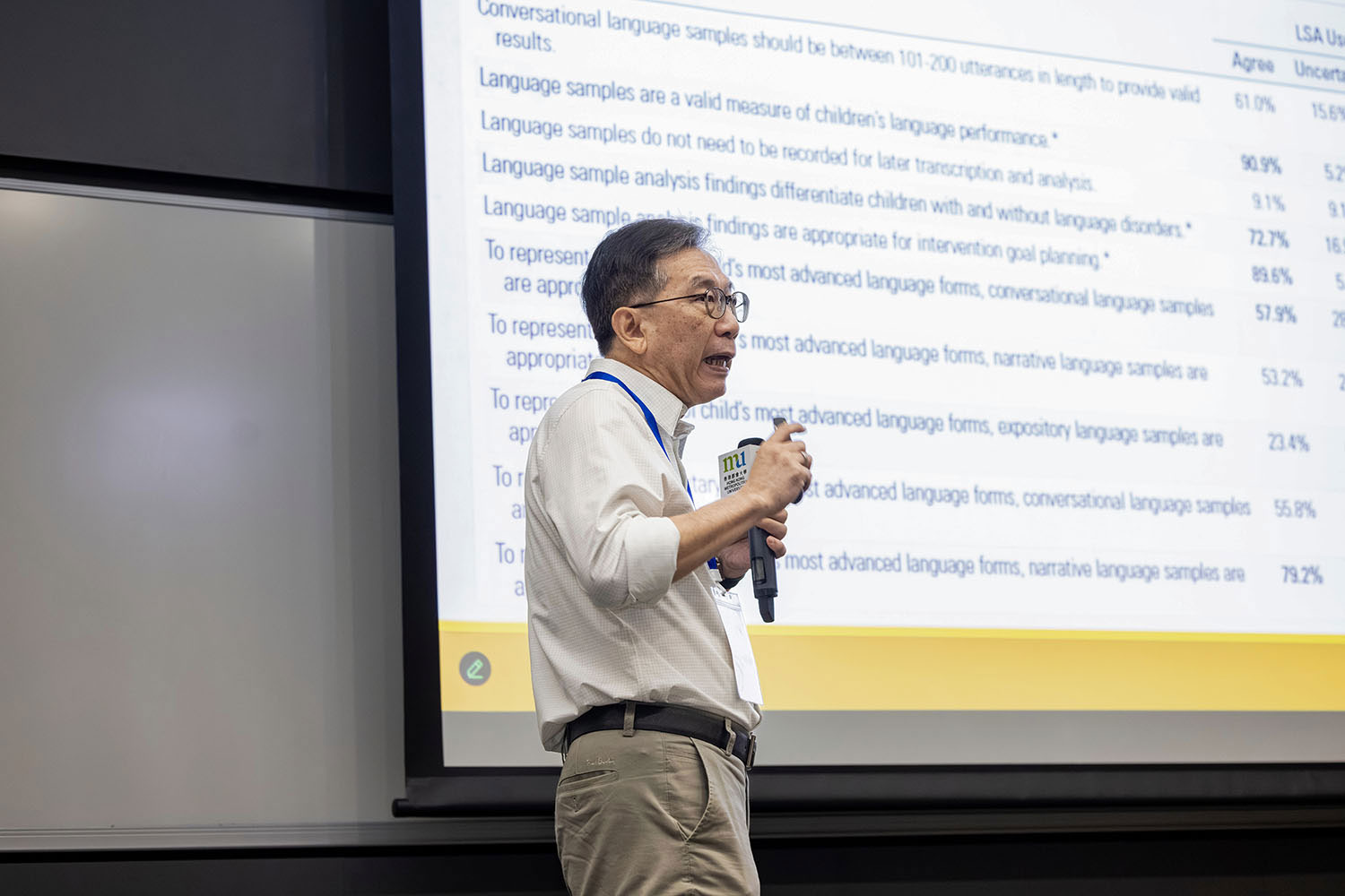 The symposium focused on Chinese-speaking individuals with special needs, including those with developmental language disorders, autism spectrum disorders, hearing impairments and other development challenges. Key topics included language development, intervention strategies and educational approaches tailored for Chinese-speaking learners with special needs, and theoretical and empirical advancements in understanding atypical language acquisition. The discussions also explored how cognitive and social factors influence language development in Chinese-speaking contexts.