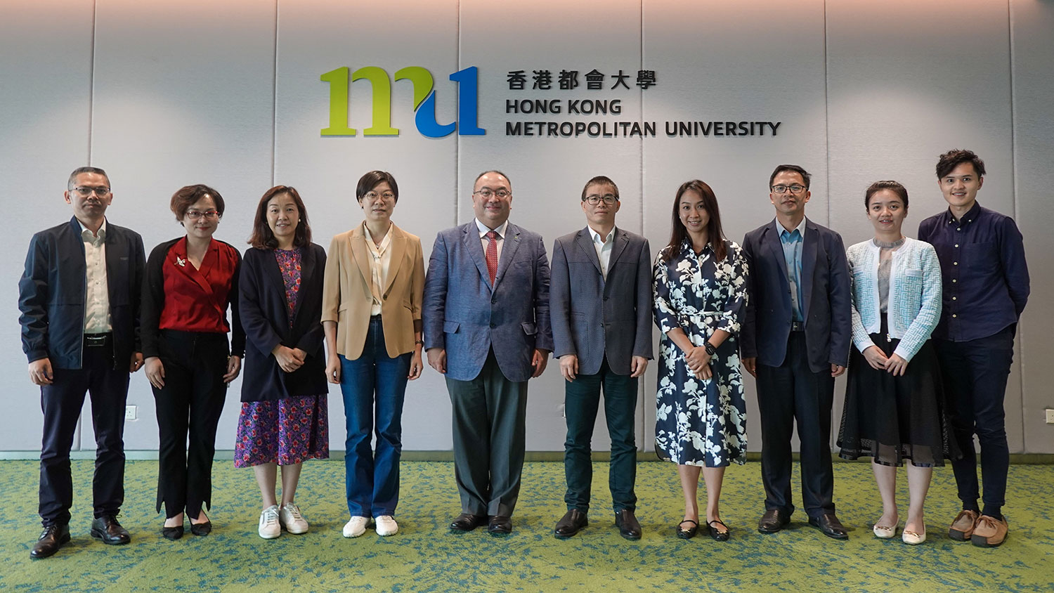 Prof. Reggie Kwan Ching-ping, Provost of HKMU (front on the right), welcomed the delegation. Both parties signed an agreement to strengthen cooperation and educational ties between the two places.