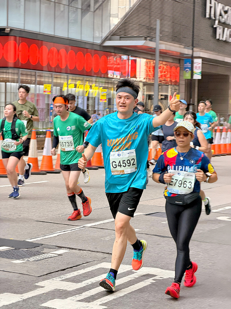Tommy Yeung Ka-ho, a Year 3 student from the Lee Shau Kee School of Business and Administration, successfully completed the half marathon for the second consecutive year. “The marathon course has many slopes, which I think symbolise the ups and downs of life. As long as you persevere, you will eventually succeed,” he said. “In the last few kilometres of the race, hearing the cheers and encouragement from the cheering team motivated me to push forward to the finish line.” Tommy believes that running is not about comparing oneself with others. The greatest achievement lies in following one's own pace and striving for a personal best.