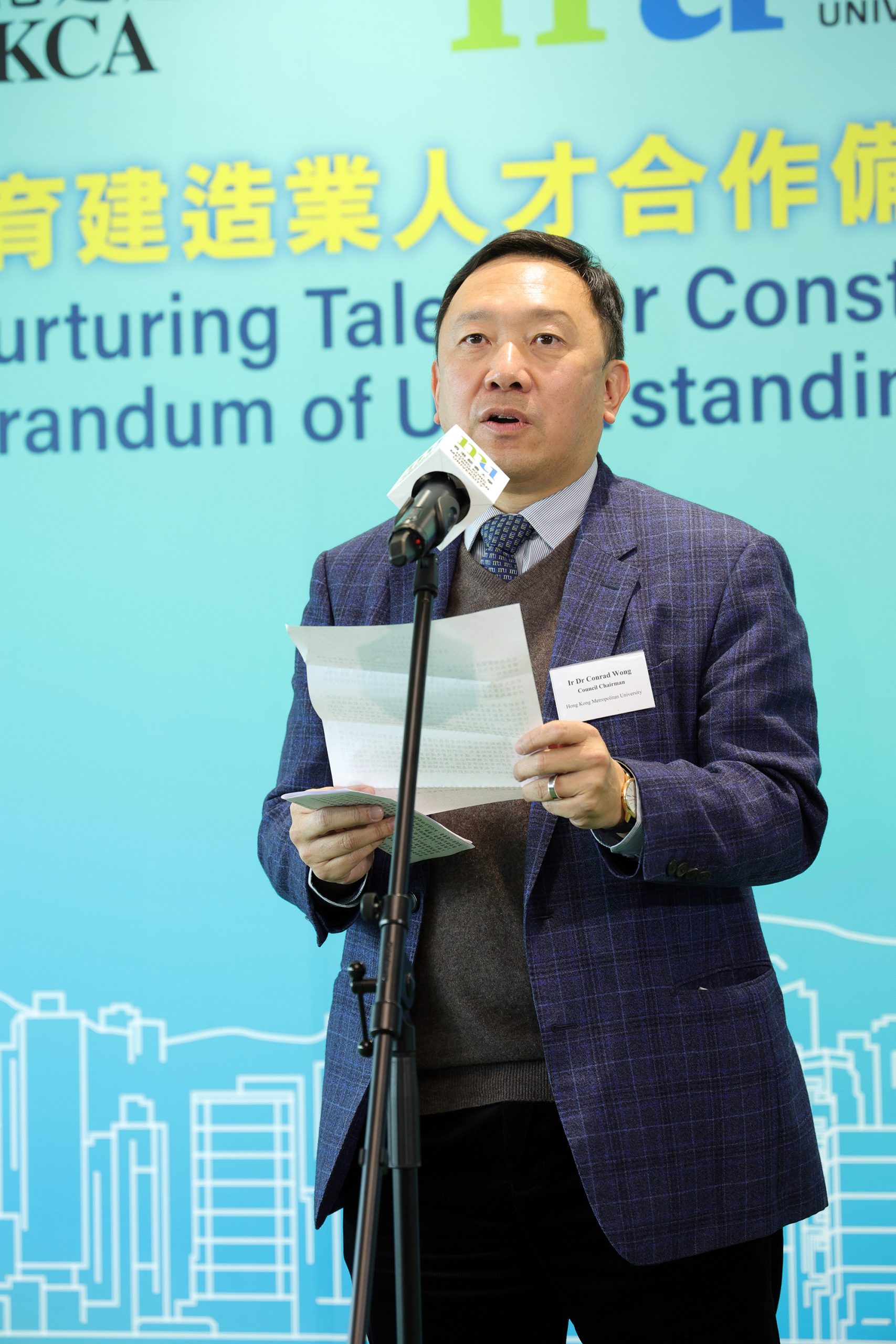 黄天祥主席致辞时感谢香港建造商会及香港机电工程商联会两所备受业界推崇的机构的支持。他指出,随着北部都会区和明日大屿等大型基建计划的开展,香港在未来数十年对具专业知识的建造人才将有庞大的需求。