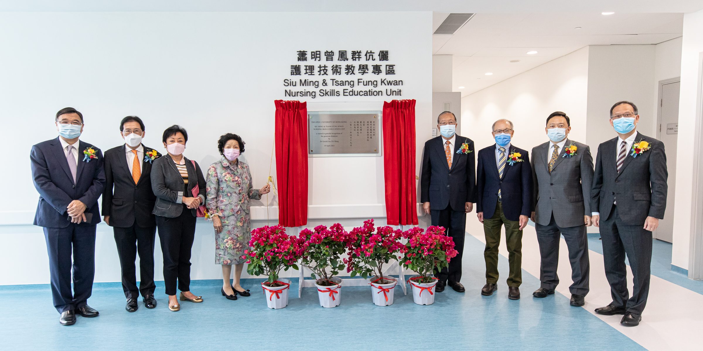 香港公开大学(公大)今日(四月十九日)举行「萧明曾凤群伉俪护理技术教学专区」命名典礼,以答谢大学谘议会成员萧志成博士慷慨捐助港币逾八百万元,
