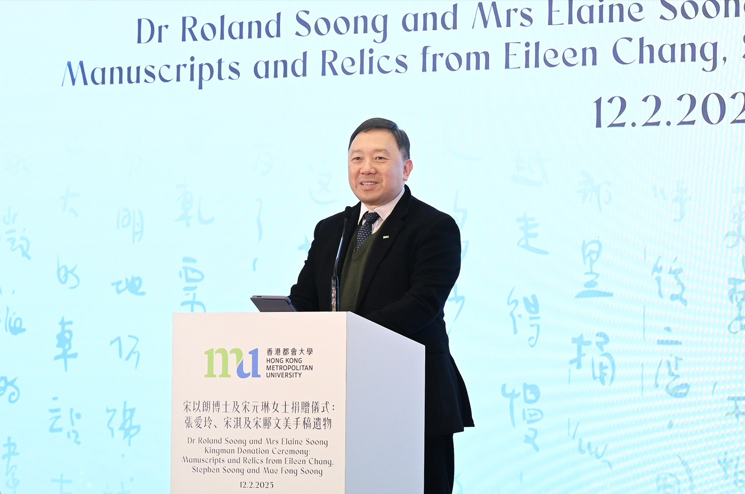 宋博士于仪式上表示,他和胞姊作为张爱玲和父母的遗产管理人,最大的心愿就是希望借着捐赠,让他们三人的手稿和遗物均得以妥善保存,作研究和推广文学之用。他说:「香港鲜有如此有份量的文学珍藏,整合了张爱玲及家父宋淇、家母宋邝文美的作品手稿与文物。我希望通过都大推动现代文学作品的保育、传承和研究,让更多人从不同角度认识三人的作品,并提升香港以至世界各地人士对华语文学界的认识和兴趣。」