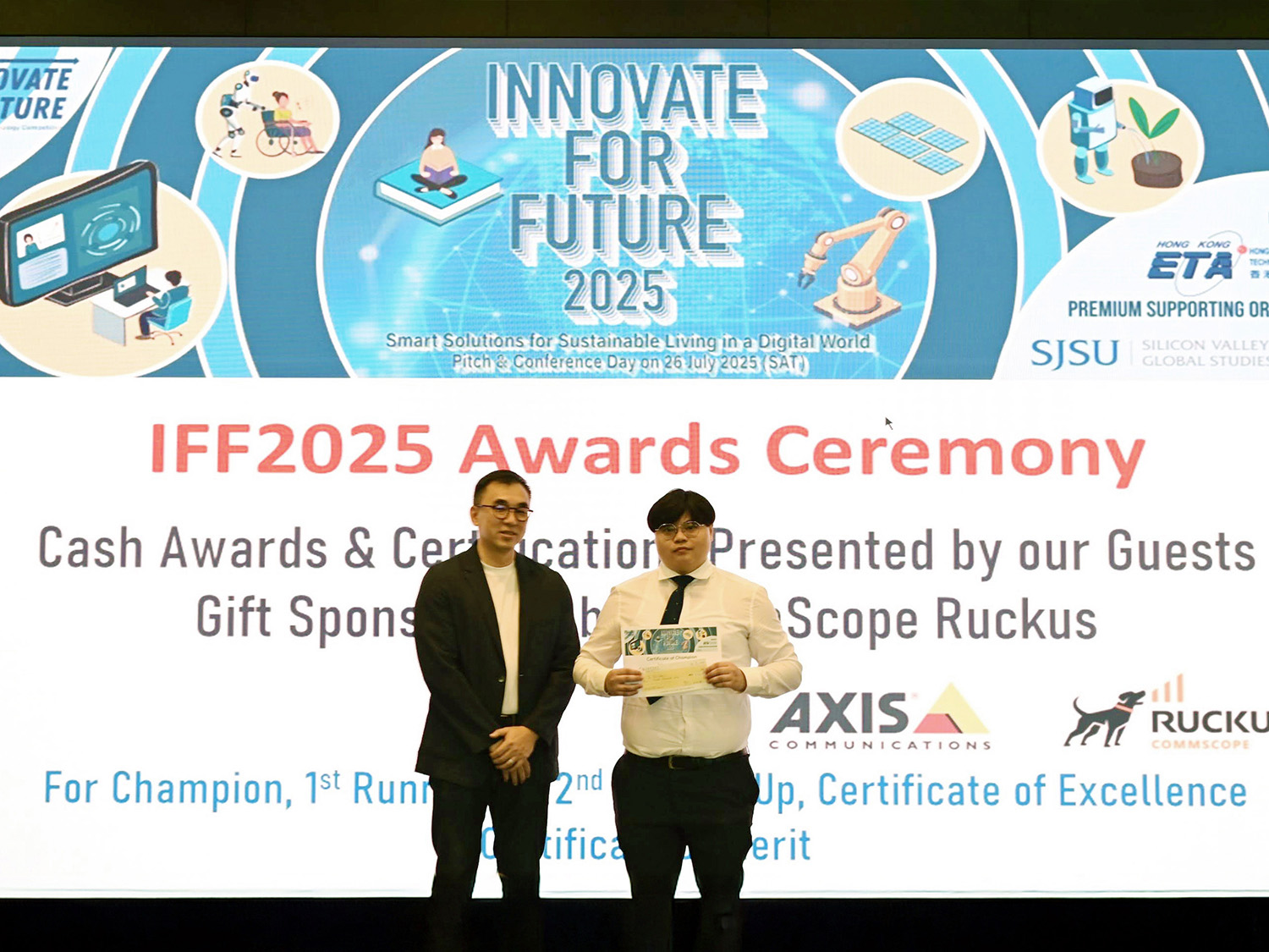 「Innovate for Future」比赛旨在启发香港年轻人从创意构想到原型开发,创造能解决和改善现实生活挑战的创新产品或服务。最终的冠军或优胜者将有机会把其项目提交至美国圣荷西州立大学的全球计划,如「硅谷创新挑战比赛与展示会(Silicon Valley Innovation Challenge Competition and Showcase)」。他们还有机会被提名参加业界支持计划、实习计划,以及参与相关展览,例如香港电子产品展等,并在科技会议上分享他们的经验。
