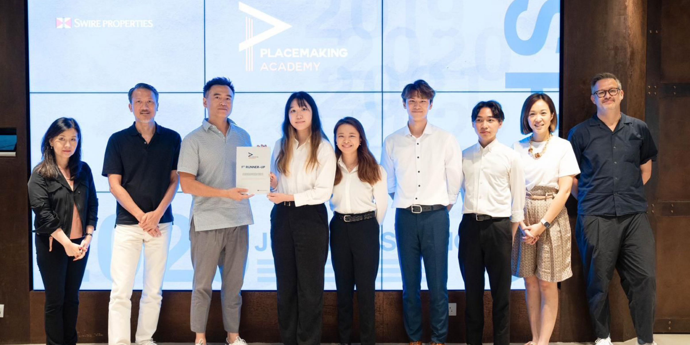 四名都大學生組成的團隊,以其「白色聖誕市集」創意提案在來自六間本地大學共十個隊伍中脫穎而出,與另一團隊同獲選為「太古地產Placemaking Academy 2023」優勝隊伍。