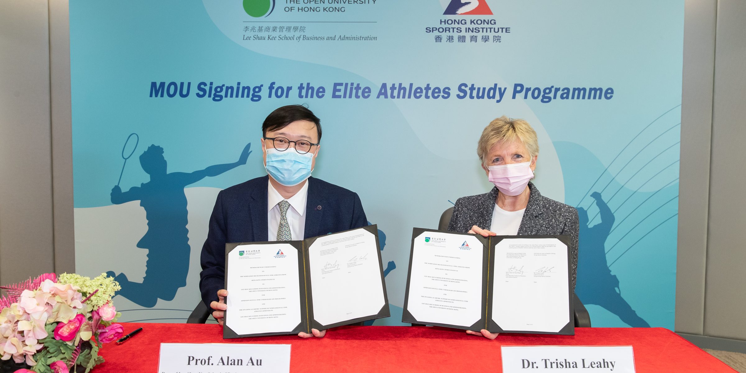 香港公開大學(公大)李兆基商業管理學院與香港體育學院(體院)今天(十一月四日)簽訂合作備忘錄,為香港全職精英運動員提供持續進修的機會。 簽訂