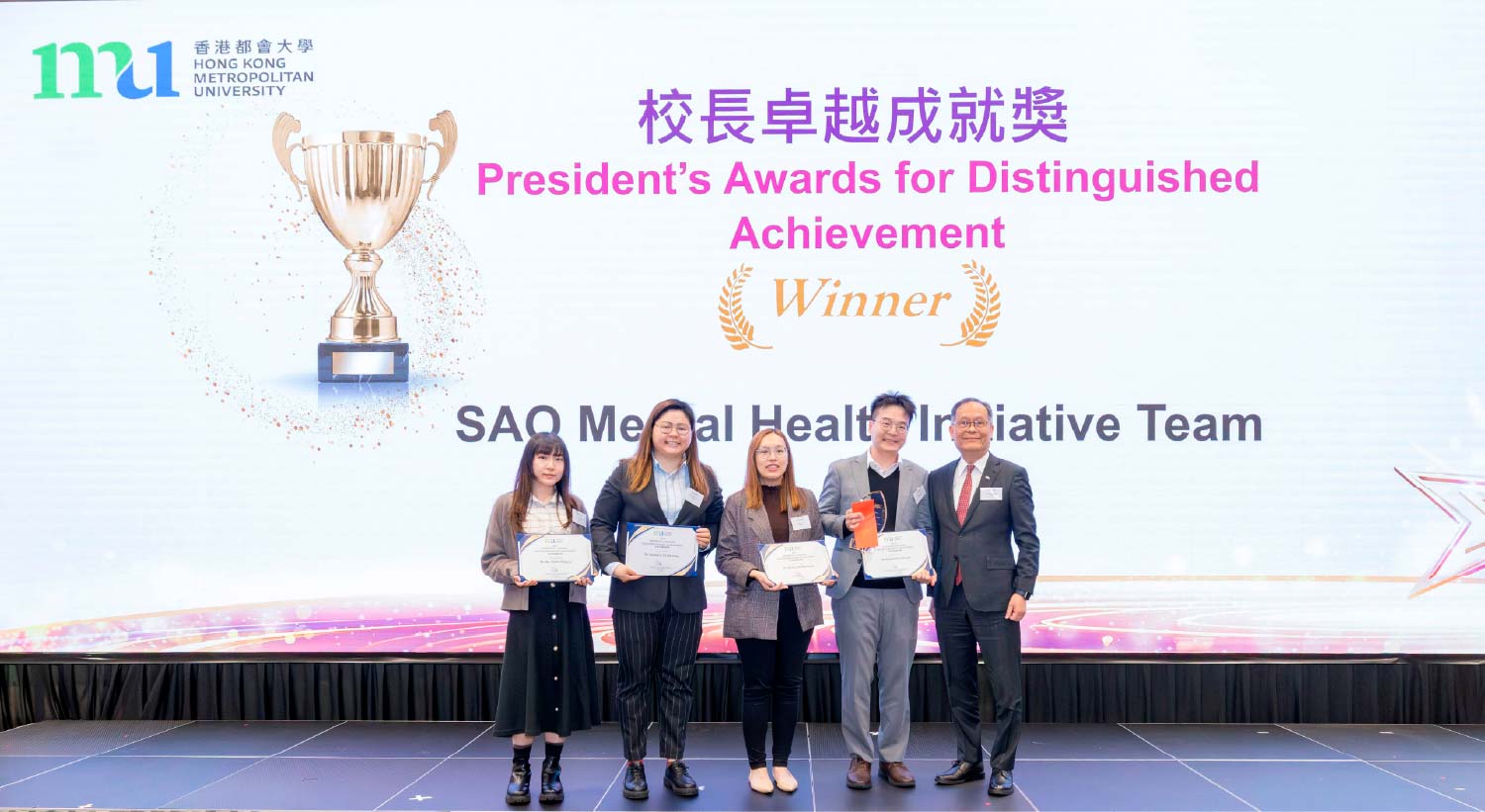 獎項旨在肯定學術及行政人員在過去一年間,於大學重點發展項目中作出卓越貢獻。今年共有13項提名,最終由人文社會科學院的「第一屆世界大學動畫獎」籌委會、學院與跨部門協作的「張愛玲、宋淇及宋鄺文美手稿及遺物捐贈項目」團隊及學生事務處的「精神健康倡導團隊」三個團隊獲得嘉許。