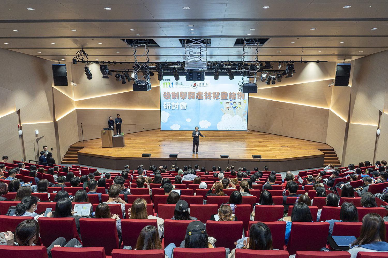 研討會由香港特別行政區政府勞工及福利局副局長何啟明先生、都大學術副校長關清平教授、香港警務處總警司(刑事支援)(刑事部)余鎧均女士、香港理工大學應用社會科學系講座教授及系主任暨兒童事務委員會成員崔永康教授、防止虐待兒童會主席張志雄教授,以及協康會行政總裁梁惠玲女士主禮。他們從政策制定、法律責任、保密規定、罰則、舉報指南及支援配套等不同角度,探討共同守護兒童的重要性。