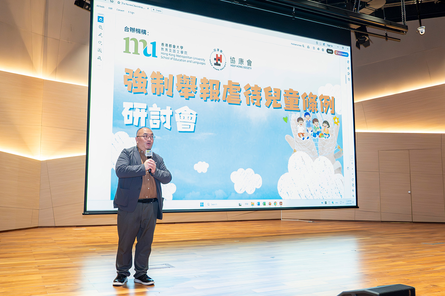都大學術副校長關清平教授致歡迎辭時,衷心感謝協康會與教育及語文學院合辦是次研討會,在《條例》實施初期,為前線專業人員提供寶貴的交流平台,讓大家一同審視過往經驗、探討未來實踐路向。他指出,都大的畢業生遍布醫療、幼兒教育以至中小學教育等多個專業領域,在其工作崗位履行舉報責任,合力守護兒童福祉。