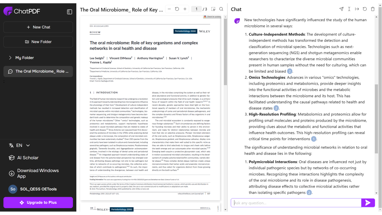 This guide outlines how to use ChatPDF to interact with documents, find academic papers, and analyse text for AI-generated content.