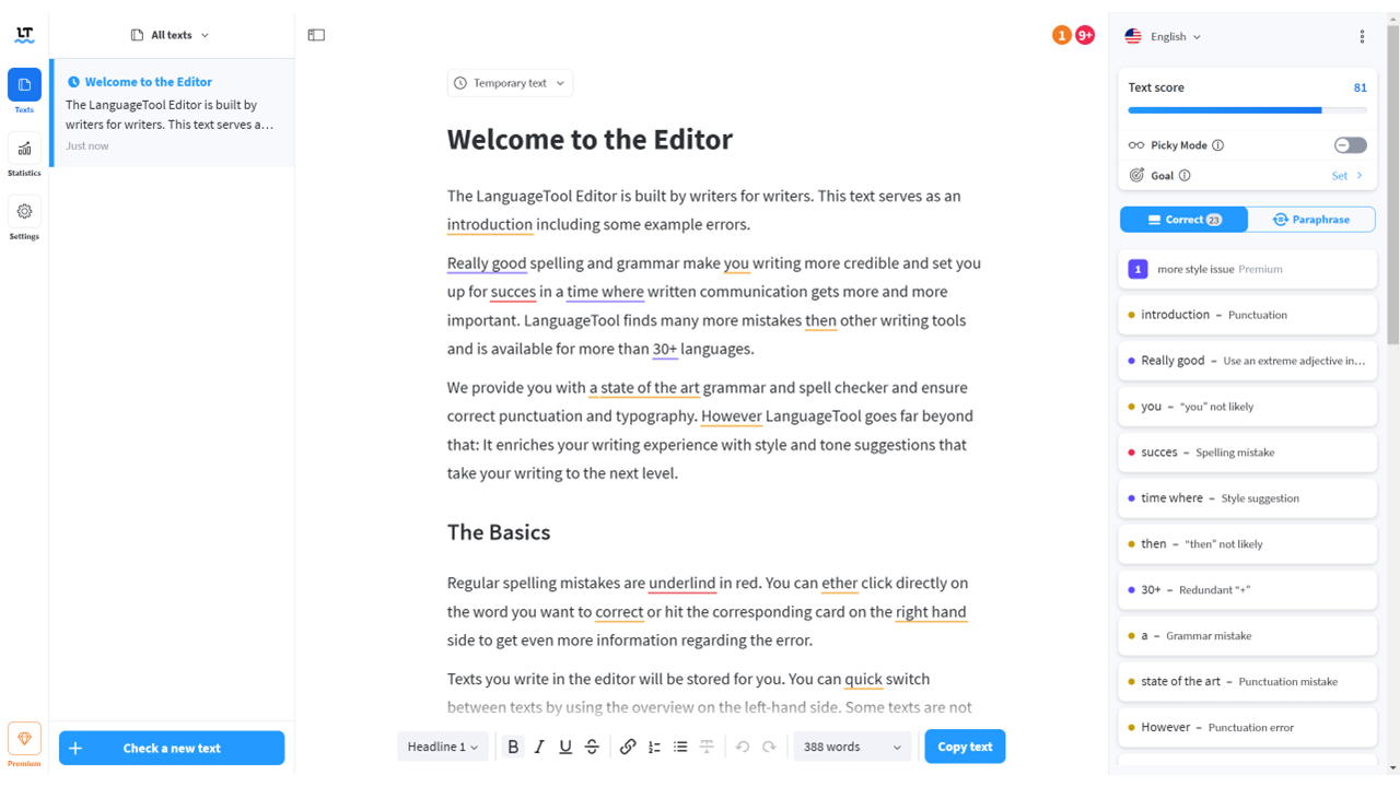 b. Locate the LanguageTool icon at the bottom-right corner of the text box;