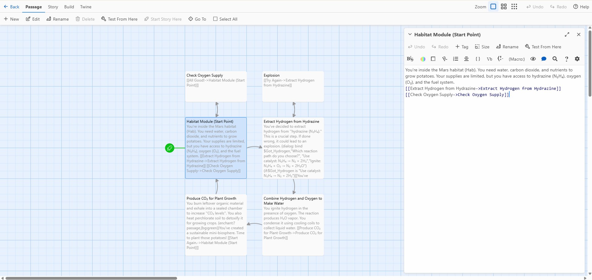a. Click and drag passages to organise your story layout (Note: Changing the layout does not affect output);