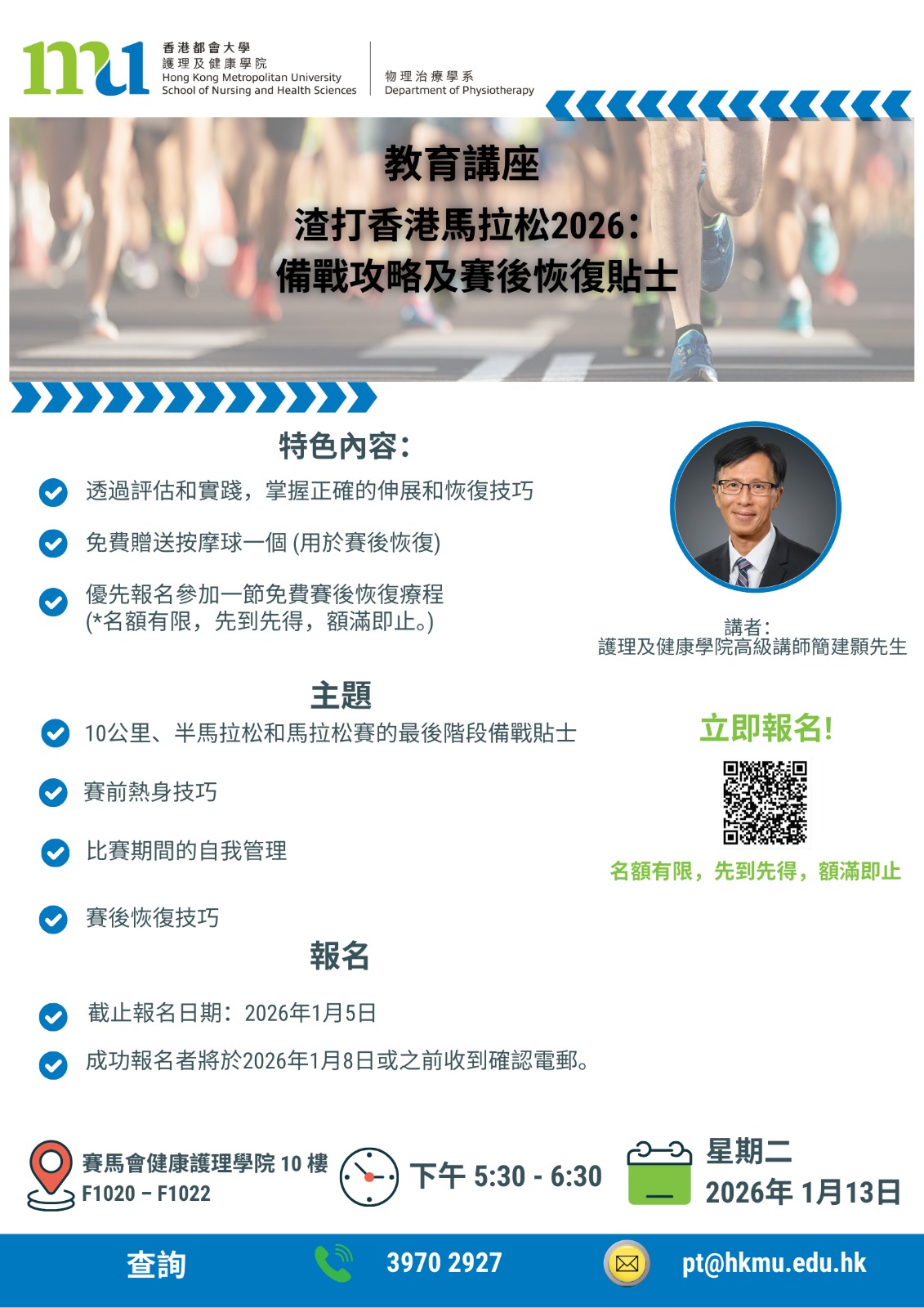物理治療學系 渣打香港馬拉松2026:備戰攻略及賽後恢復貼士