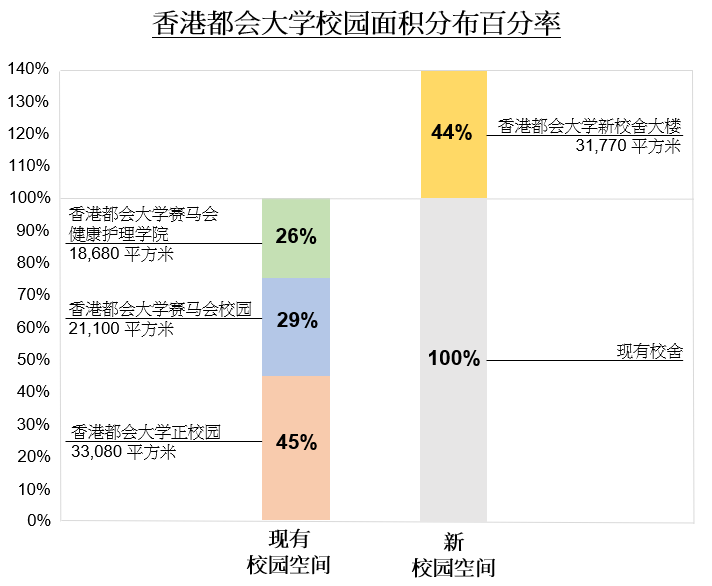 该项目的占地面积约3,530平方米,将为香港都会大学提供约31,770平方米的额外总楼面面积,相当于现有校园空间约44% 。