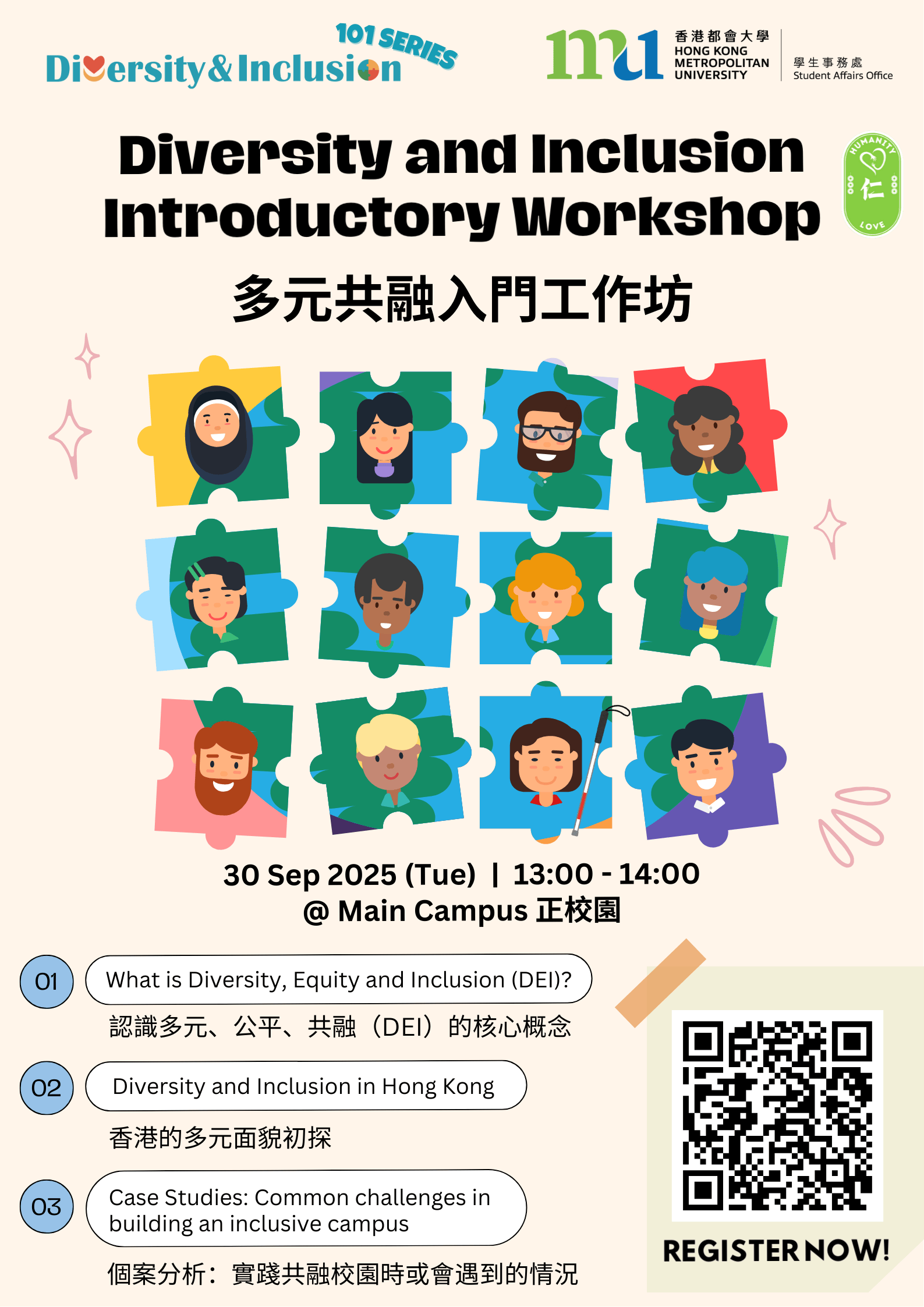 With the start of the new academic year, the Student Affairs Office is excited to launch the brand-new Diversity and Inclusion 101 Series (D&I 101 Series) to help you explore the essentials of diversity and inclusion (D&I).