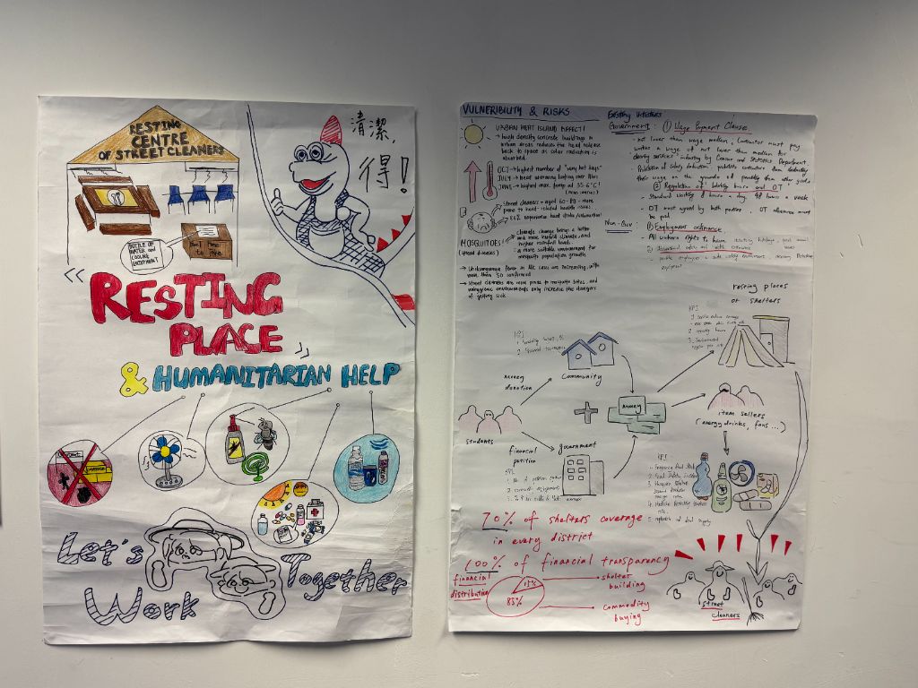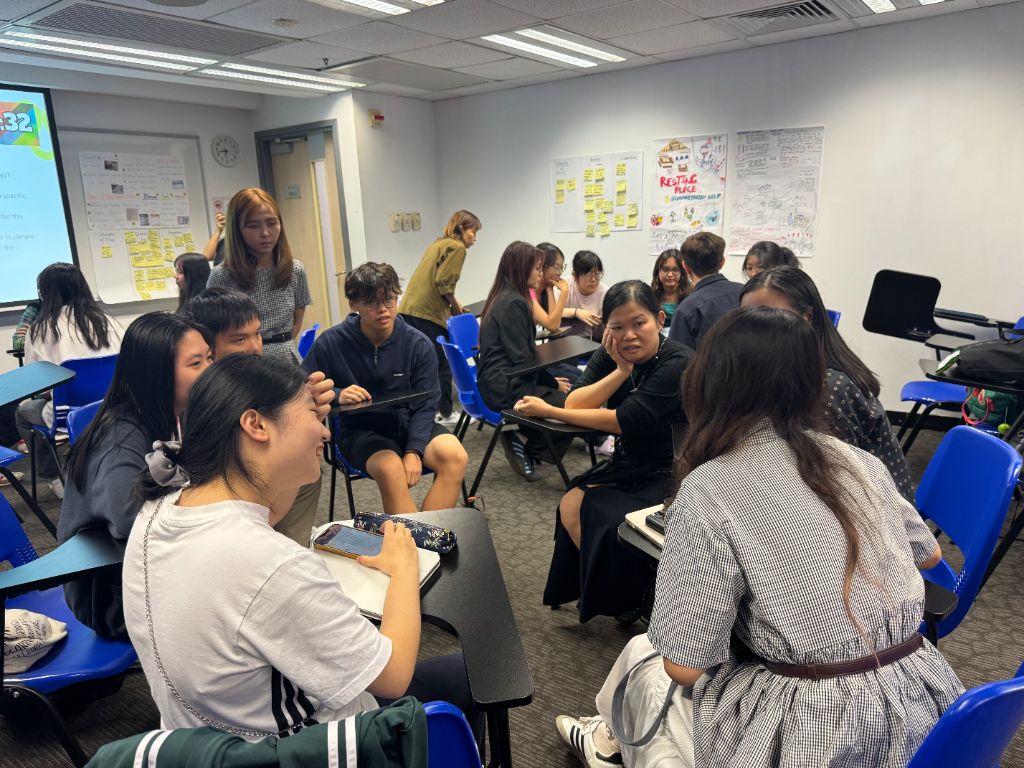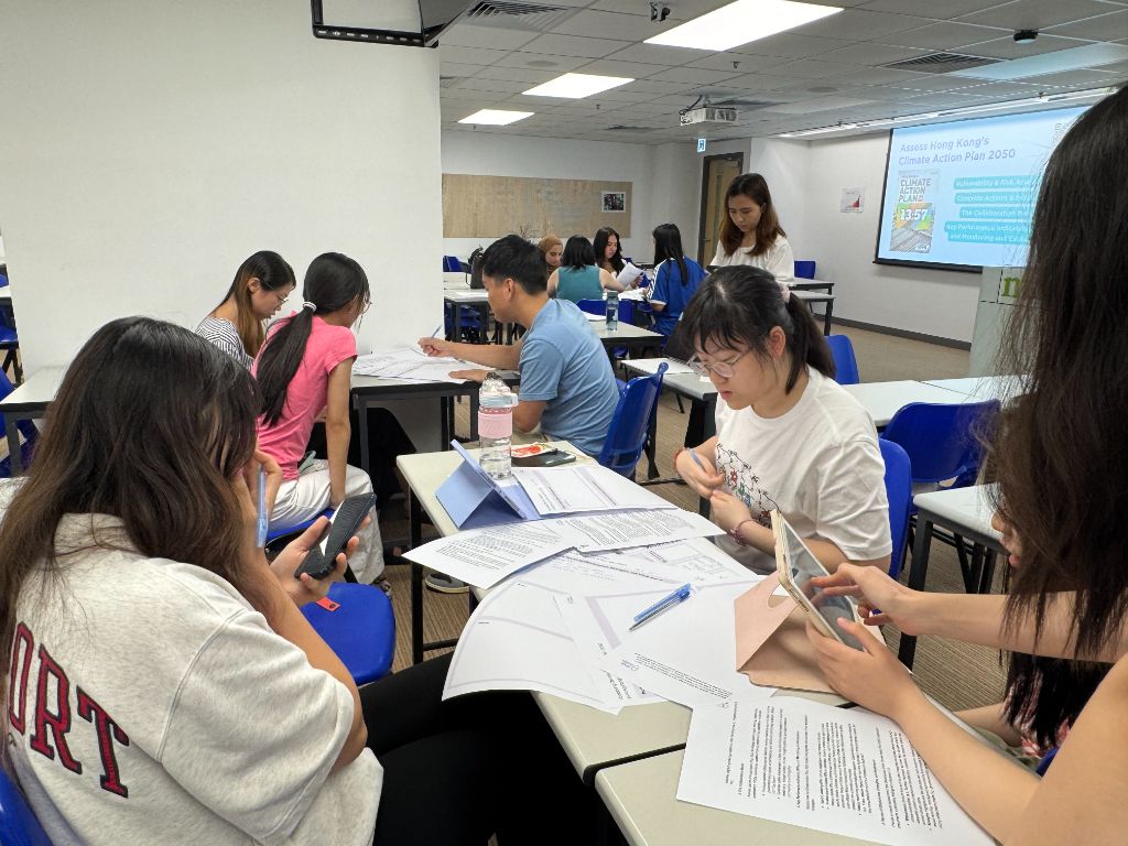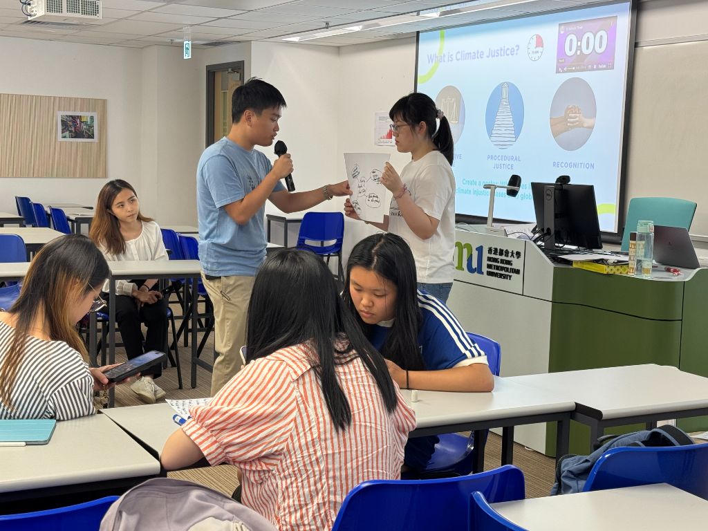 The first day introduced students to the critical topic of climate change and its local implications through interactive and collaborative activities. The session began with a “Gallery Walk”, where students explore visual and textual materials to understand the interconnectedness of climate change and its global and local impacts. This was followed by a group discussion focused on climate justice, encouraging students to research and relate the principles of fairness and equity to Hong Kong’s unique context.  Students were asked to create a persona for the vulnerable communities e.g., homeless people and street cleaners. Finally, a group workshop allowed students to critically examine Hong Kong’s Climate Action Plan, identifying its strengths and weaknesses.