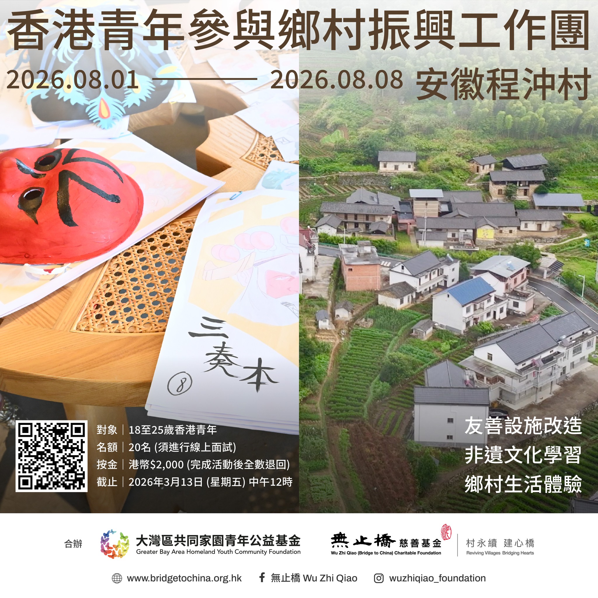 【#大灣區共同家園青年公益基金x無止橋|安徽程沖村鄉村振興工作團 參加者招募中🔊】