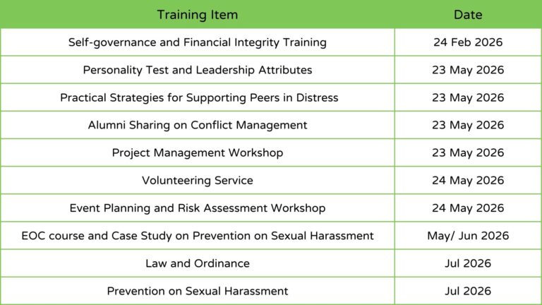 Mandatory training for student leaders to study the legal knowledge and case studies, to enhance students’ essential skills in preventing sexual harassment comprehensively, while also promoting empathy towards marginalized groups.