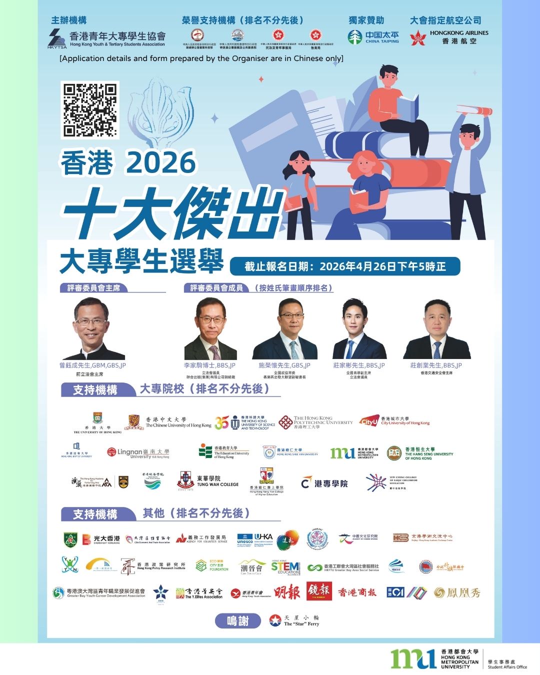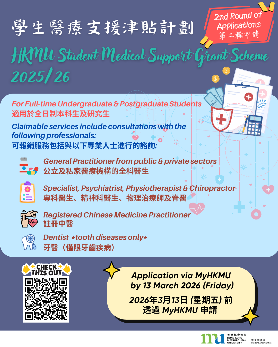 HKMU understands the challenge of financing university studies.  We are committed to providing financial assistance to needy students who should have equal opportunities for fruitful university studies.