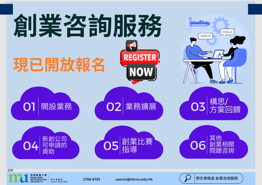 學生事務處創業諮詢服務現已開放報名!讓我們為同學未來的創業之旅做好準備。
