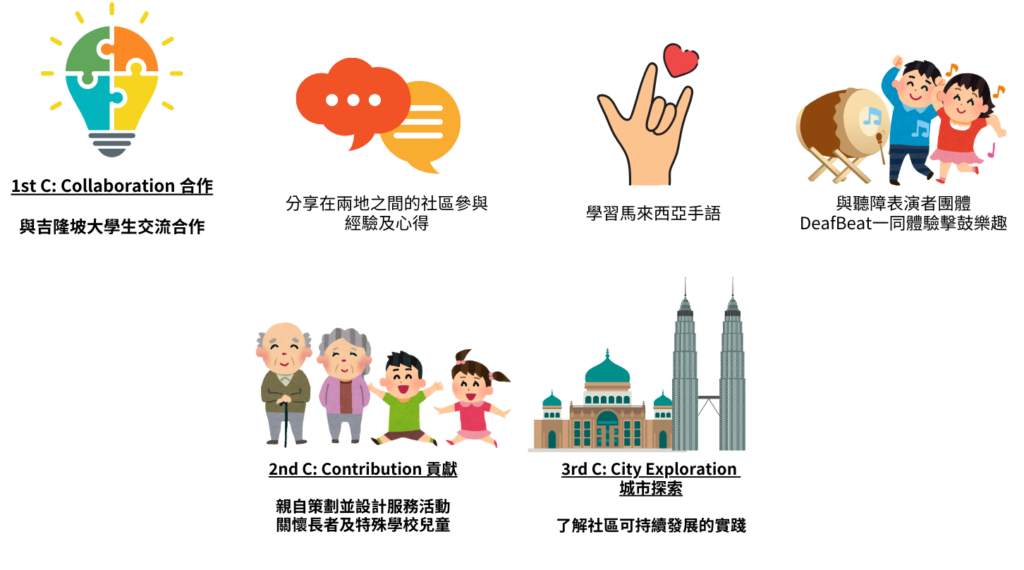 目標:透過「3C——協作(Collaboration)、貢獻(Contribution)與城市探索(City Exploration)」之旅,讓參加者親身與當地社區互動,打破刻板印象,推動共融精神