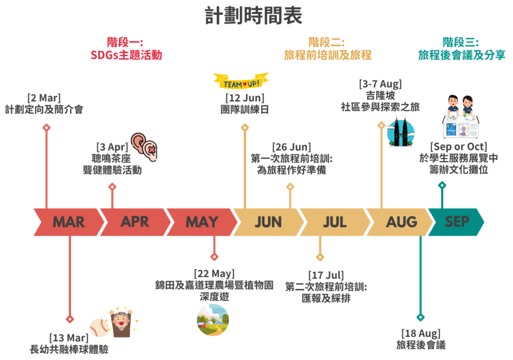 *此旅程由學生事務處(SAO)與外部社區參與夥伴共同合作舉辦;出發前將提供一系列培訓課程(詳情請參閱活動時間表)