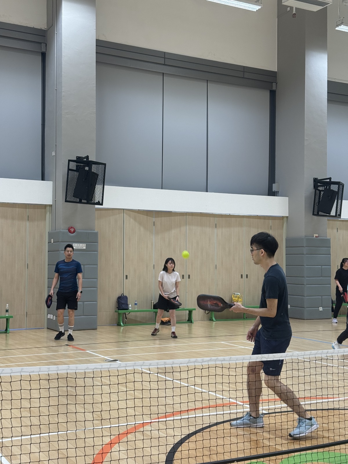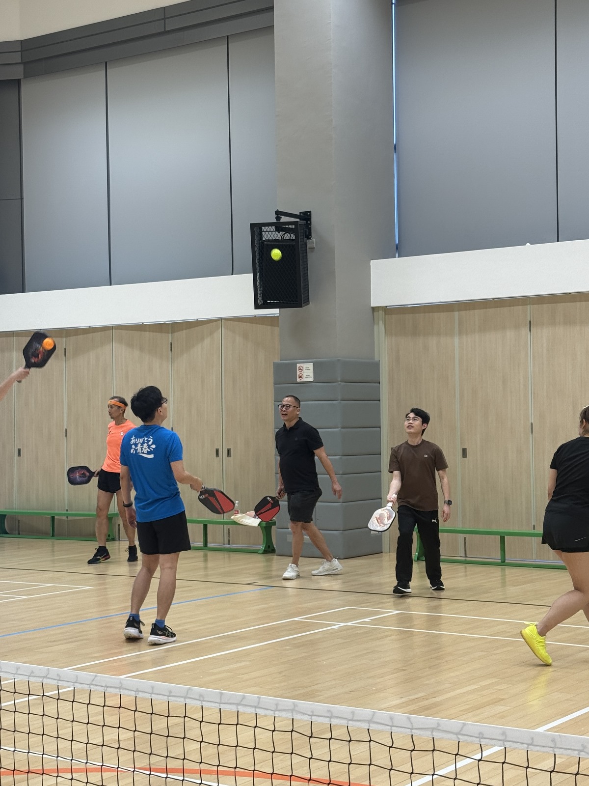 During the session, the instructor clearly explained the core techniques of pickleball and placed special emphasis on demonstrating commonly challenging aspects such as “grip and power” and “serve reception rhythm.” Through small-group coaching sessions, the instructor provided individualised guidance to help students refine their movements and elevate their skills. Additionally, interactive practice segments were organised to encourage peer learning; some experienced players offered tips to assist beginners in improving their skills. Finally, a group match was conducted, allowing students to experience the importance of teamwork in a competitive setting.