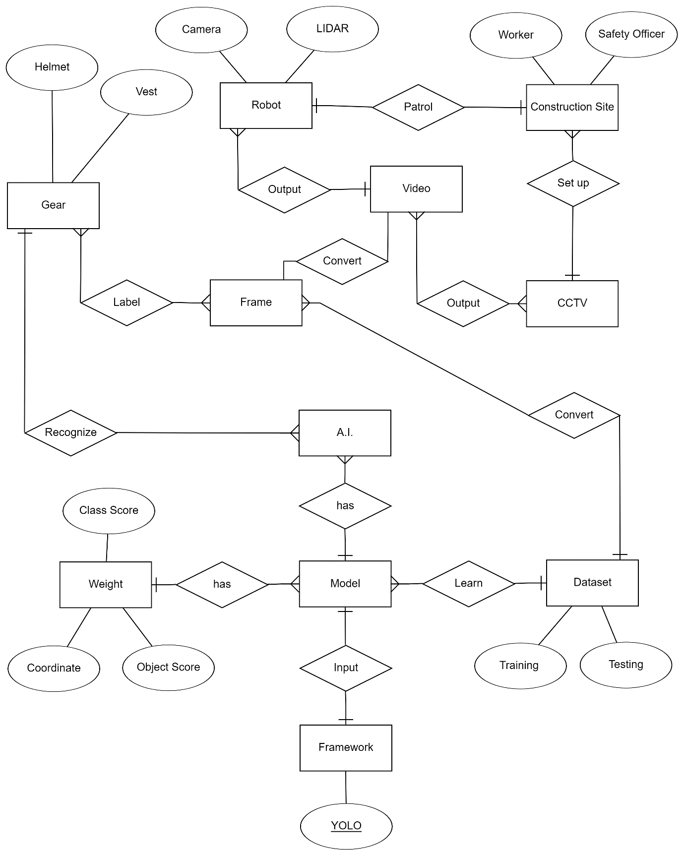 Figure 2. A.I. recognize personal protective gear Entity Relationship Diagram