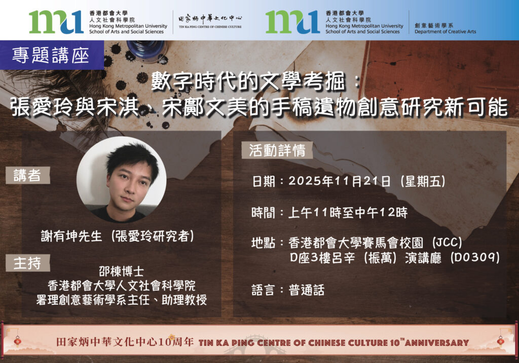 主講嘉賓: 謝有坤先生(張愛玲研究者)