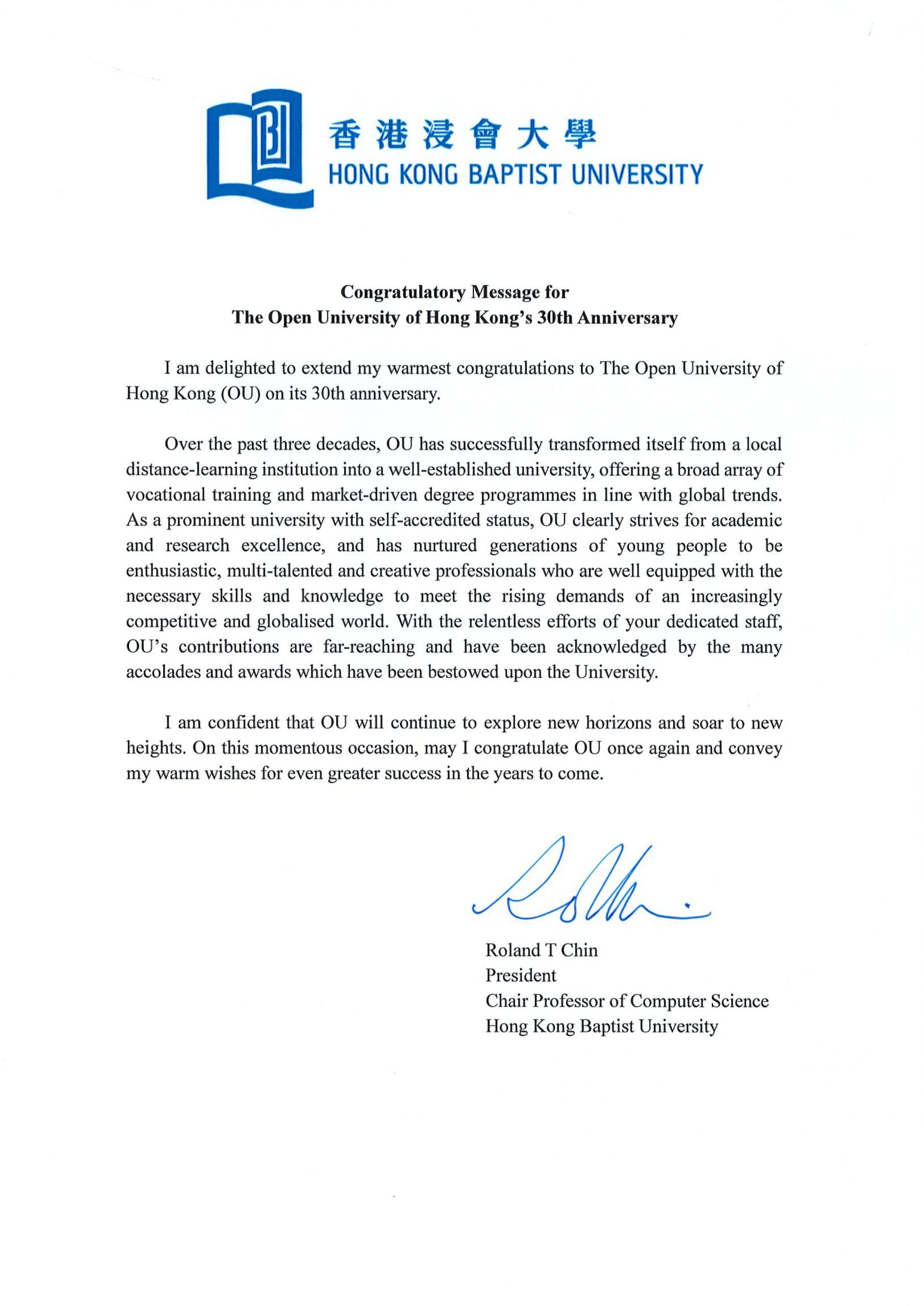 OUHK 30th Anniversary Professor Roland T CHIN, BBS, JP