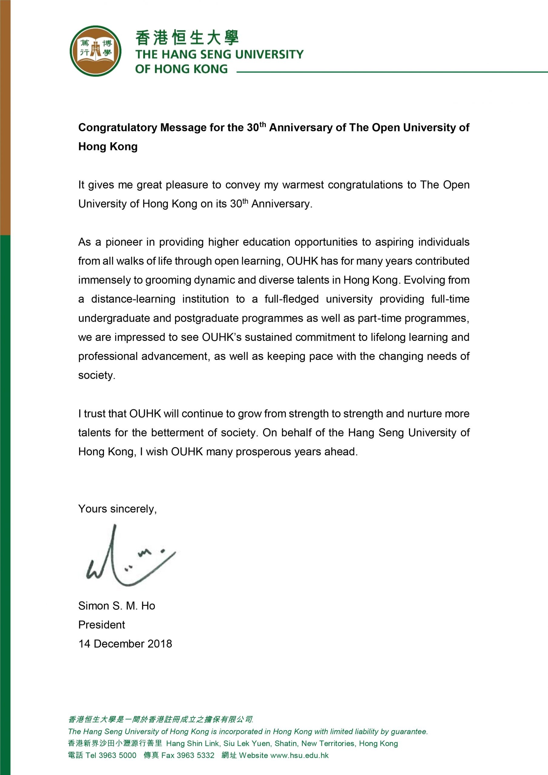 OUHK 30th Anniversary Professor Simon S. M. HO